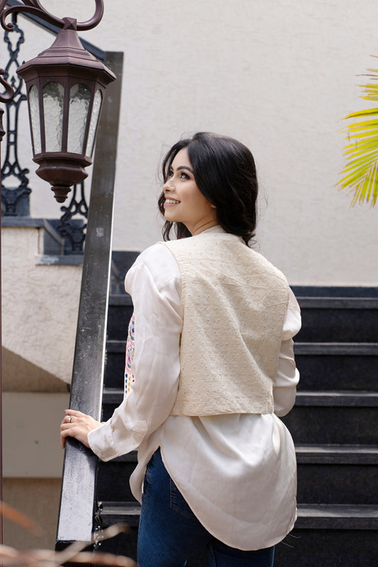 Bohemian Full Sleeves Cotton Coat [Off White]