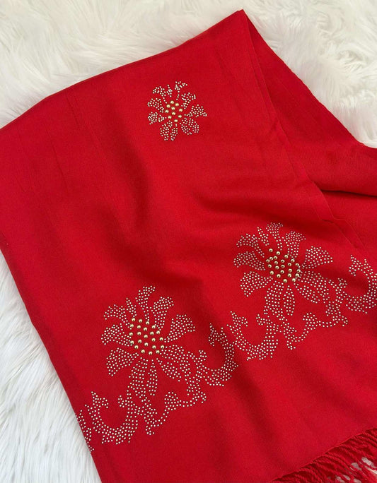 Reversible Pashmina, Cashmere Zari Scarf [Red]