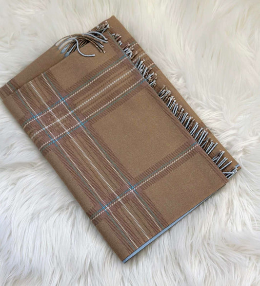 Reversible Plaid Pure Wool Brown Scarf