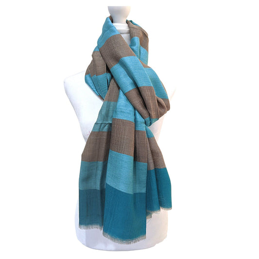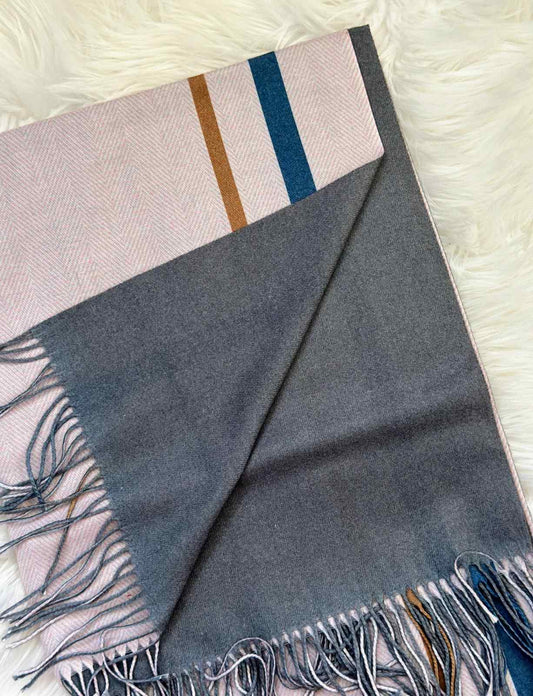 Pashmina Cashmere Stripes Scarf [Blue]