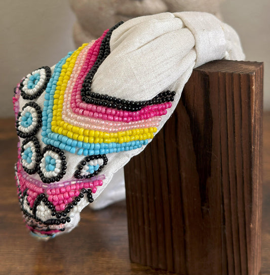Colorful Beaded Silk Fashion Headband [White]