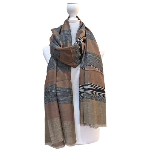 Pashmina Cashmere Ikat Stripes Scarf [Brown]