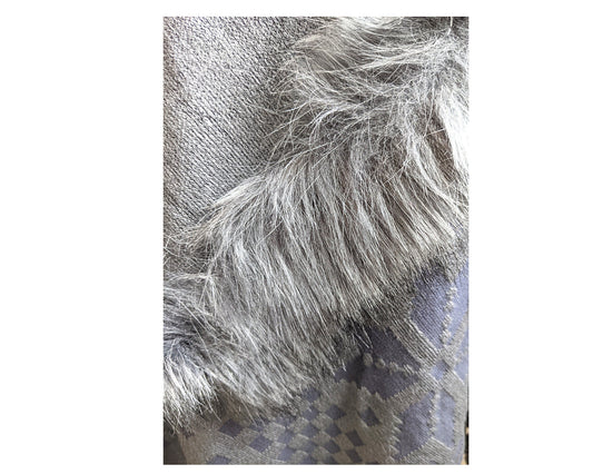 Crystal Studded Pure Wool Fur Poncho [Gray]