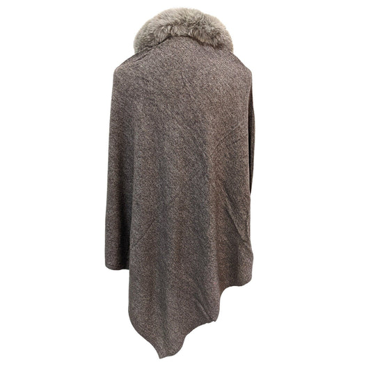 Crystal Studded Pure Wool Fur Poncho [Brown]