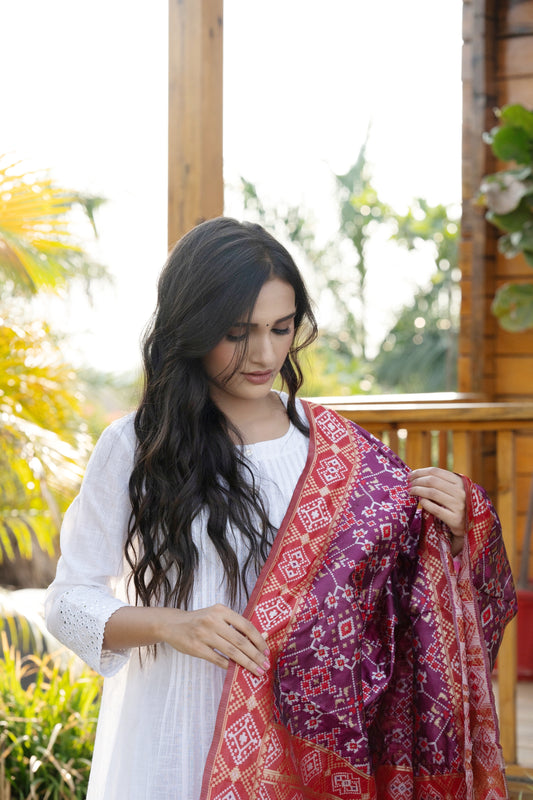 Traditional Silk Patola Dupatta [Maroon & Green]