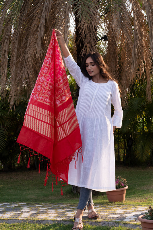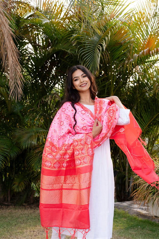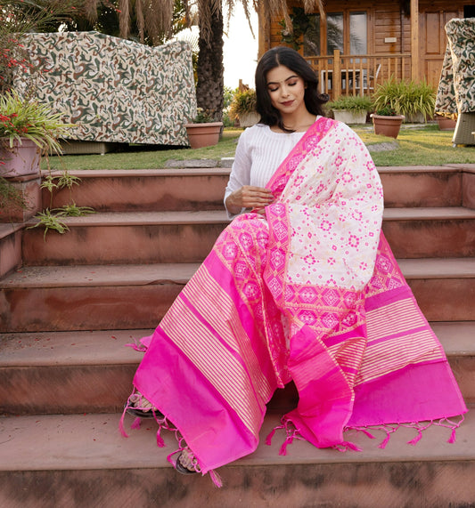 Traditional Silk Patola Dupatta [Hot Pink & Red]