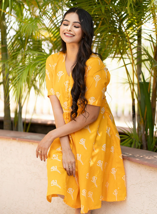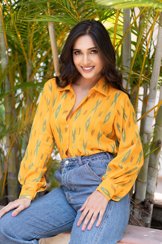 Women Button Down Shirt Long Sleeves for Summer - Yellow