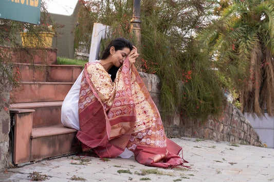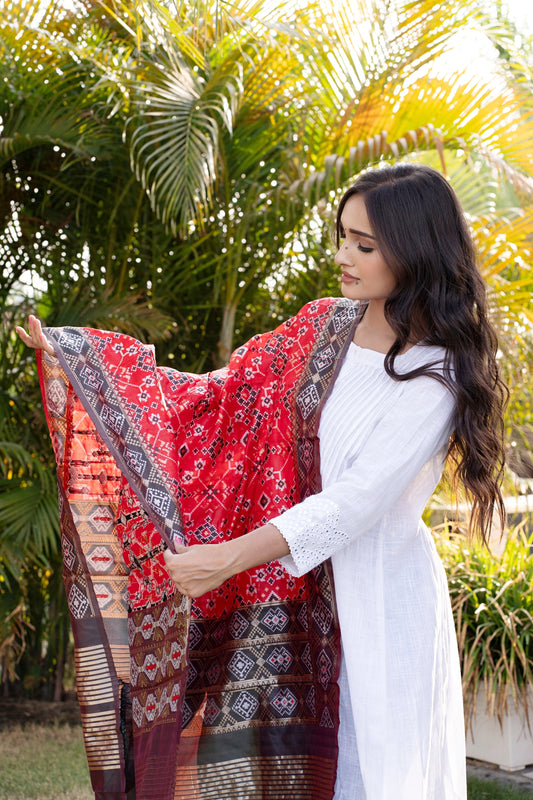 Traditional Silk Patola Dupatta [Gold & Maroon]