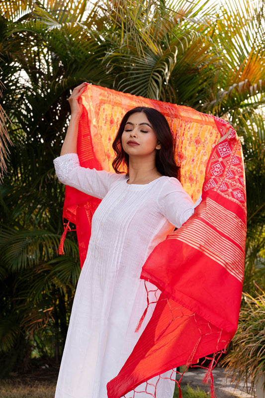 Traditional Silk Patola Dupatta [Yellow & Red]