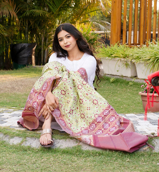 Traditional Silk Patola Dupatta [Light Green & Maroon]