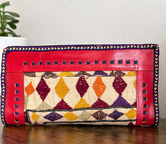 Hand Crafted Kutch Embroidered Clutch Wallet [Red D2]
