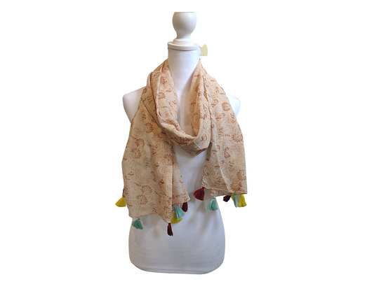 Peach & Brown Cotton Scarf | Colorful Tassels