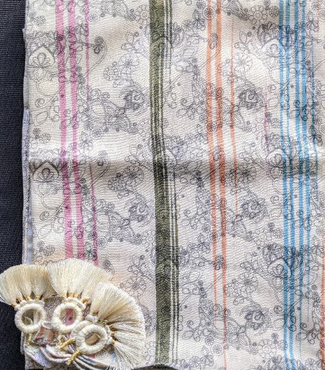 Off-white Pink Gray Cotton Scarf | Pink Tassels