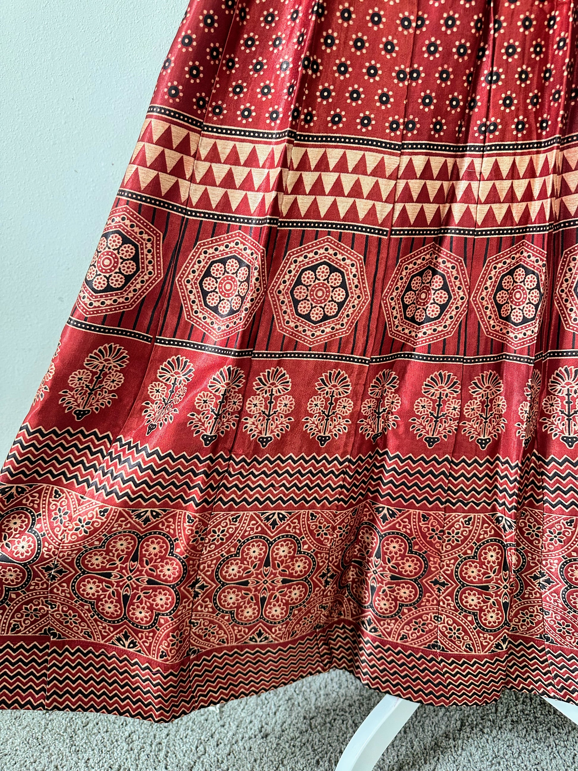 This beautiful wrap-style lehenga skirt features authentic Ajrakh-inspired prints and rich Indian colors, designed for comfort, flair, and cultural pride. Whether you’re shopping for Diwali, Navratri, or looking for a stylish Indo-fusion piece, this skirt is a must-have.