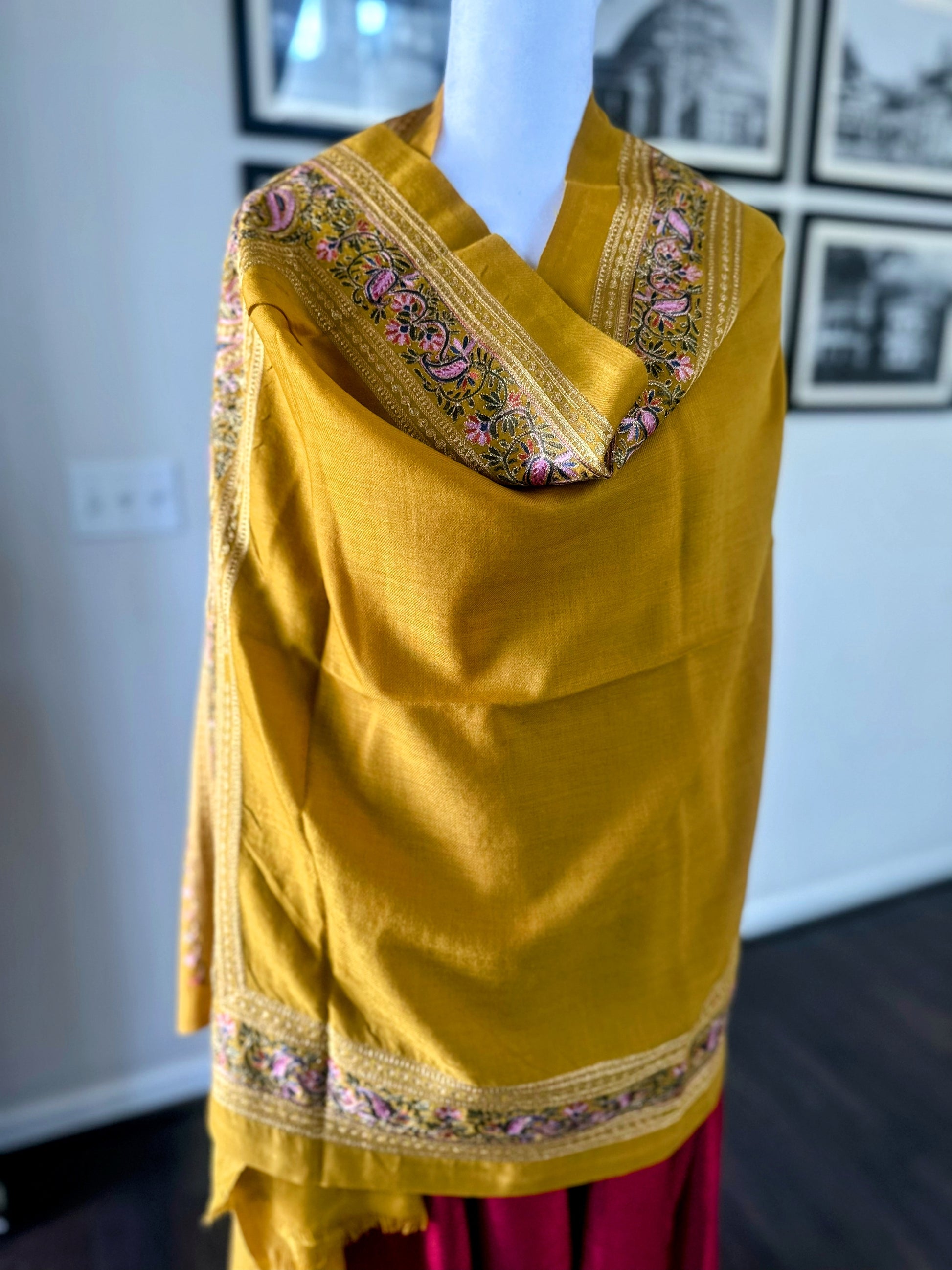 Pashmina Shawl | Luxury Wool Wrap for Women | Yellow Scarf