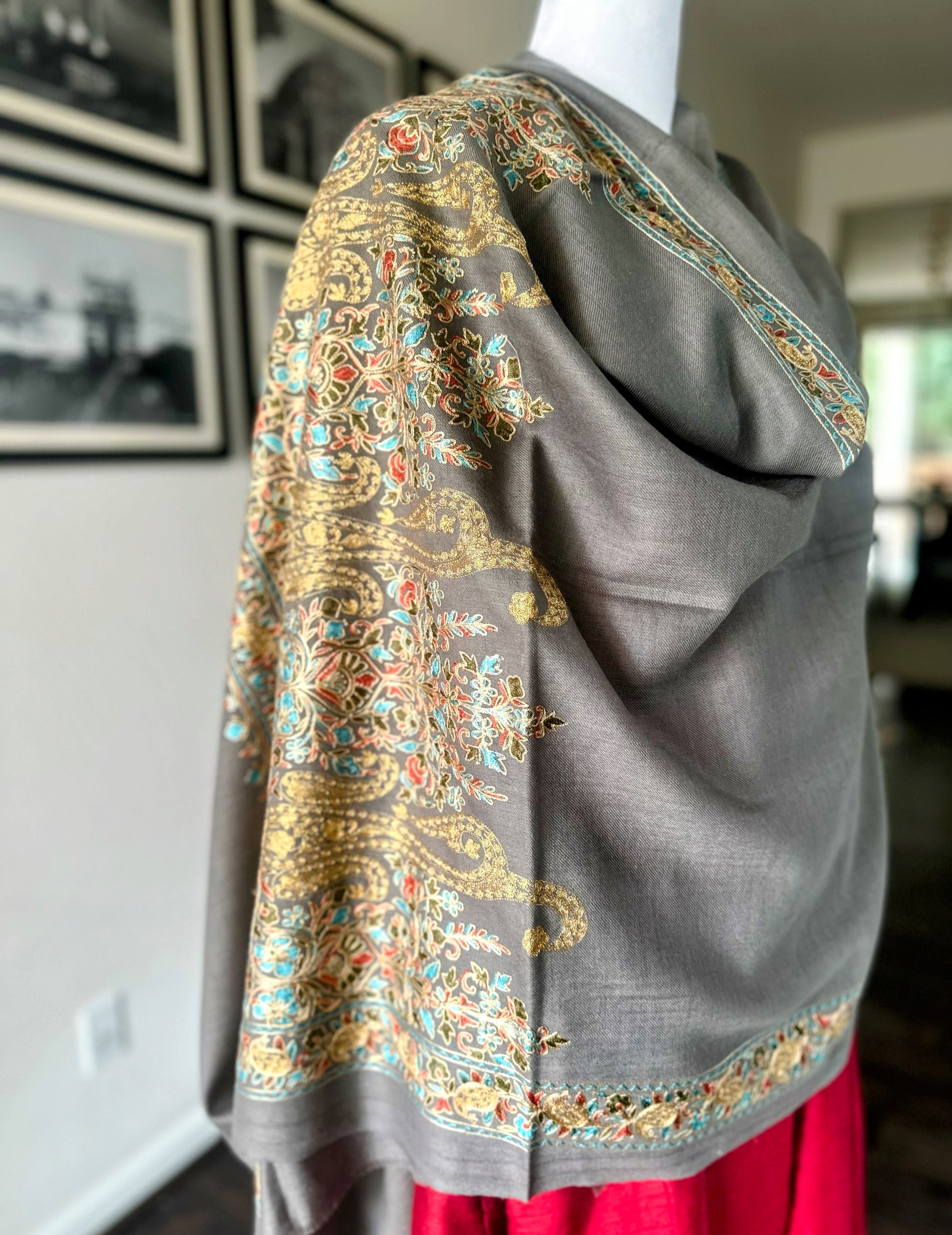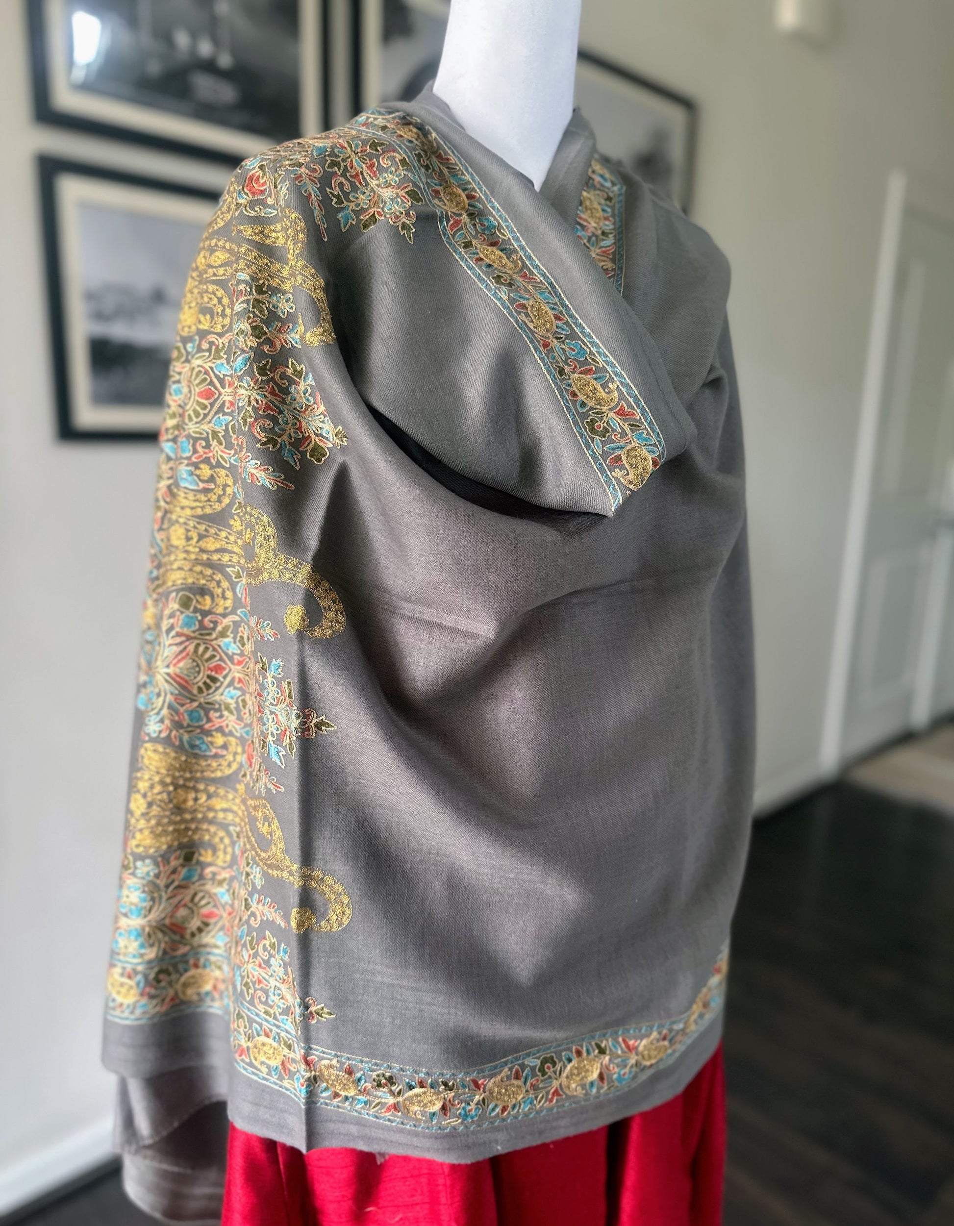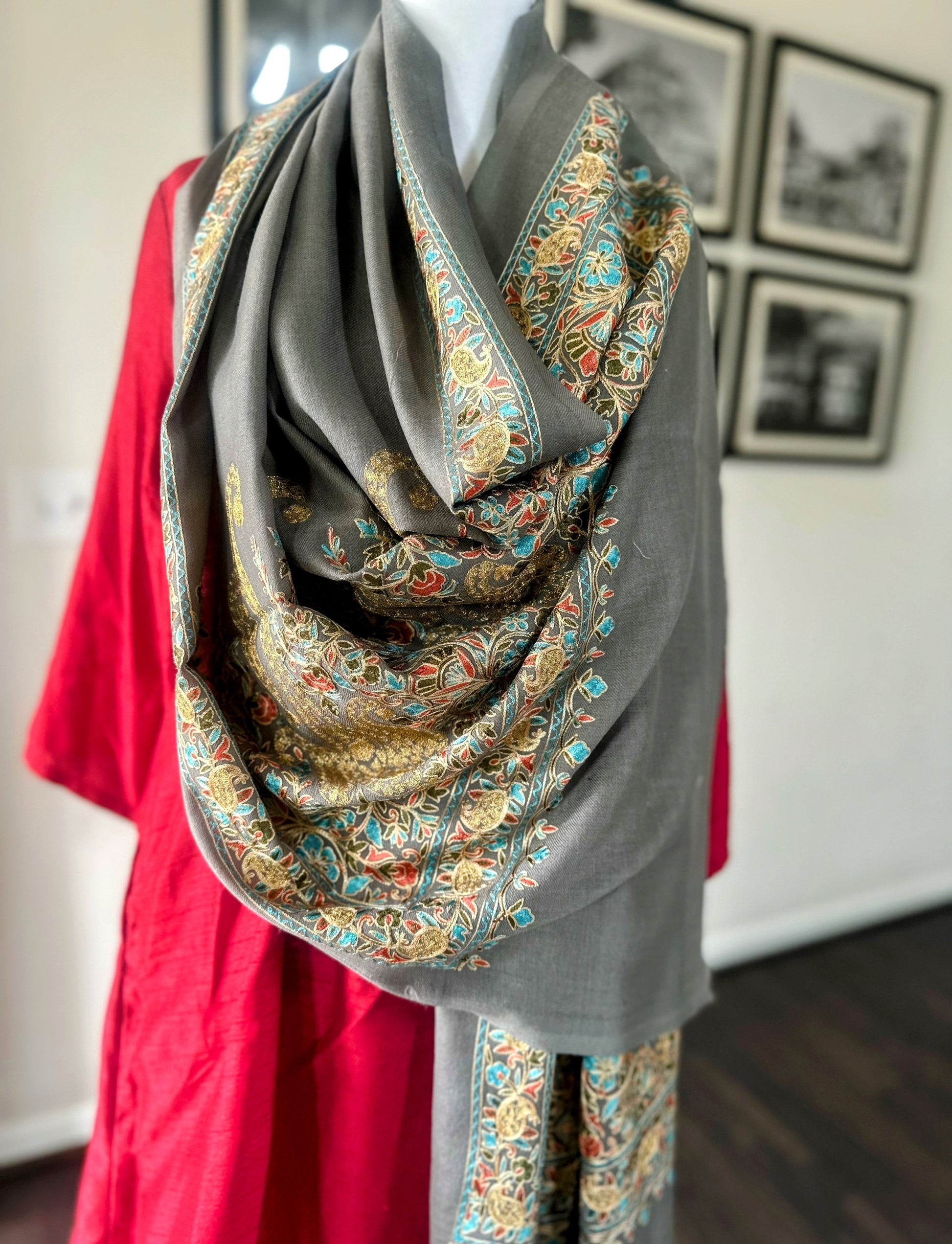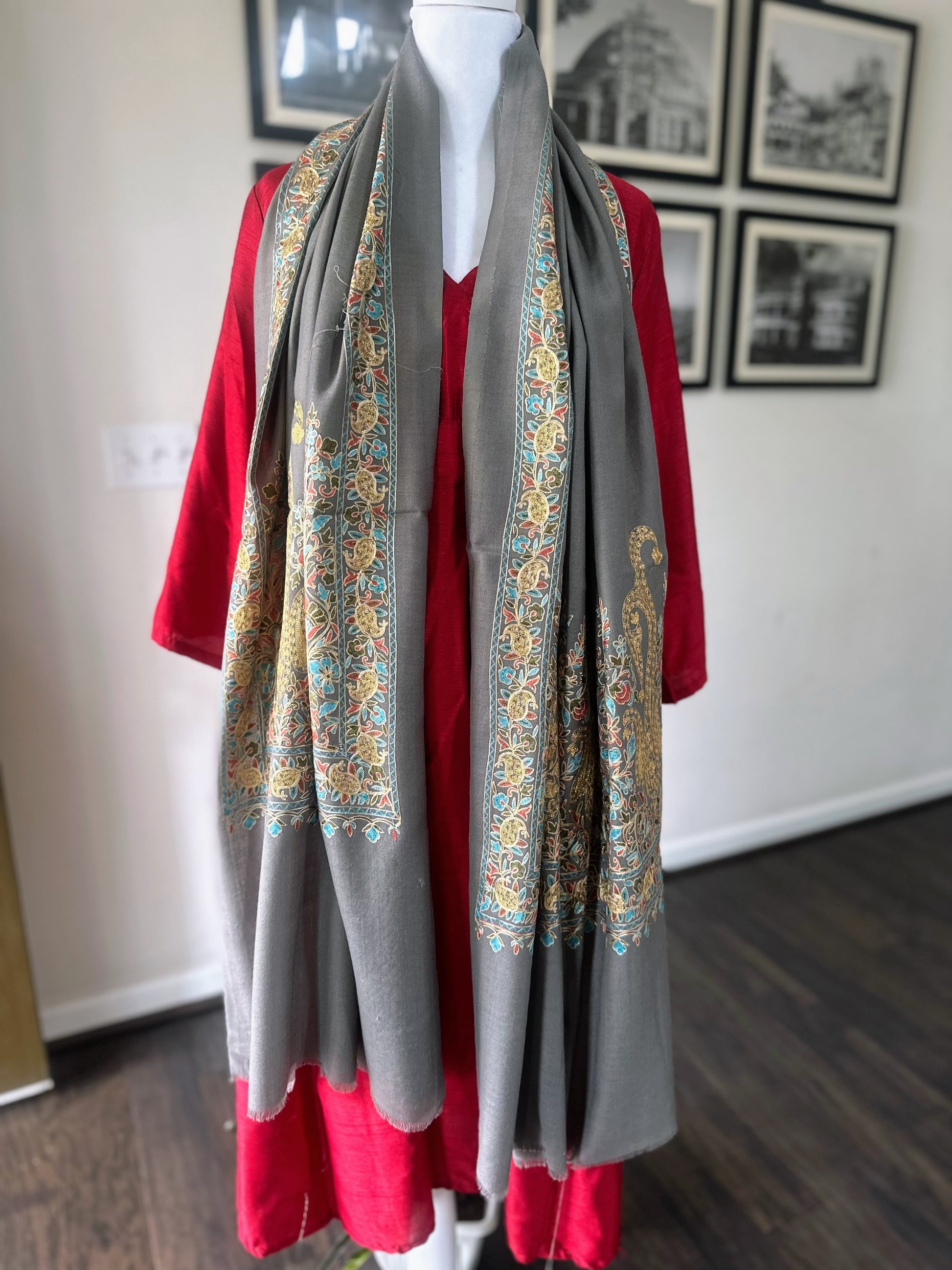 Ari work Pashmina Scarf, Cashmere Scarf, Finest Quality Kashmiri Shawl, Scarves For Women