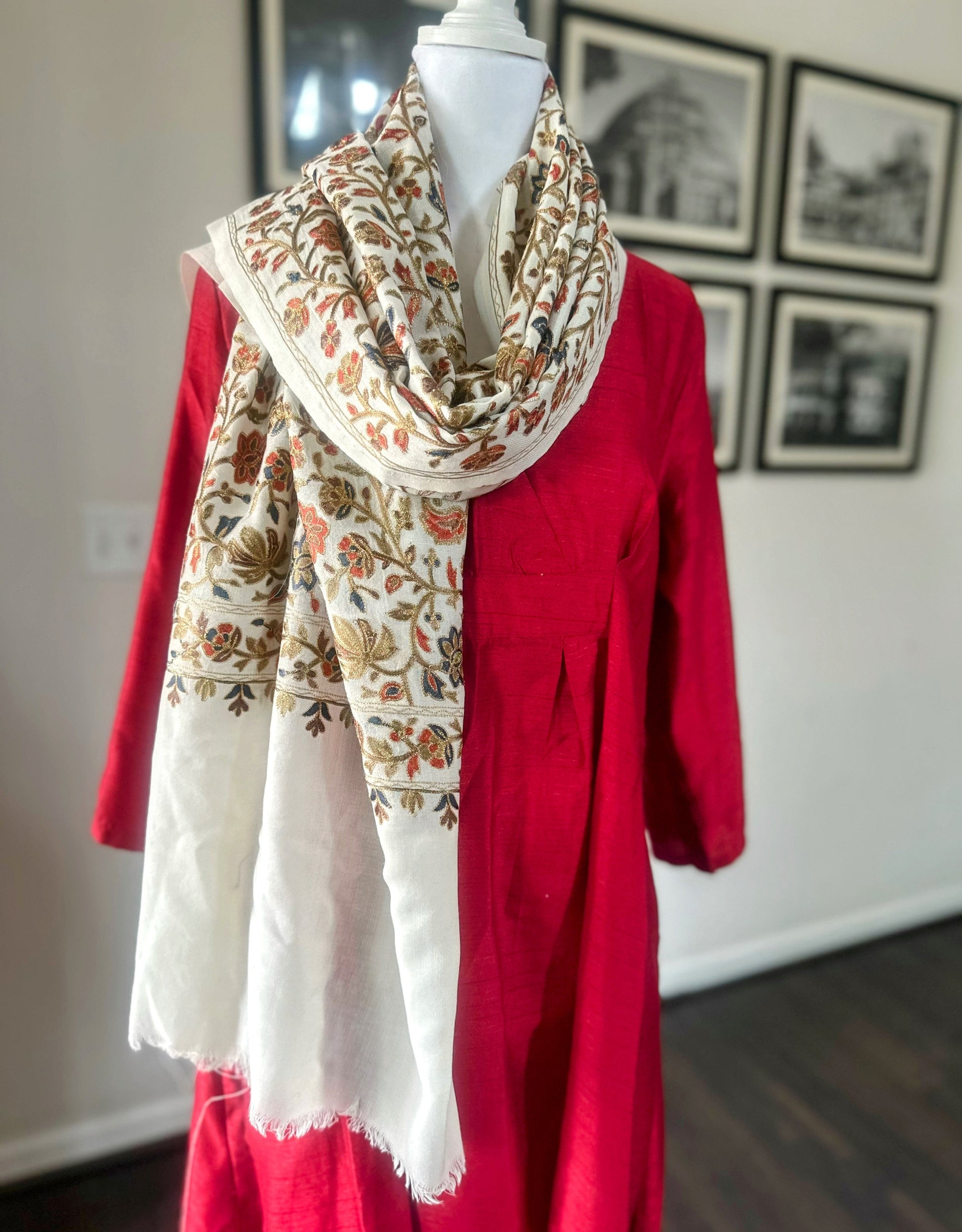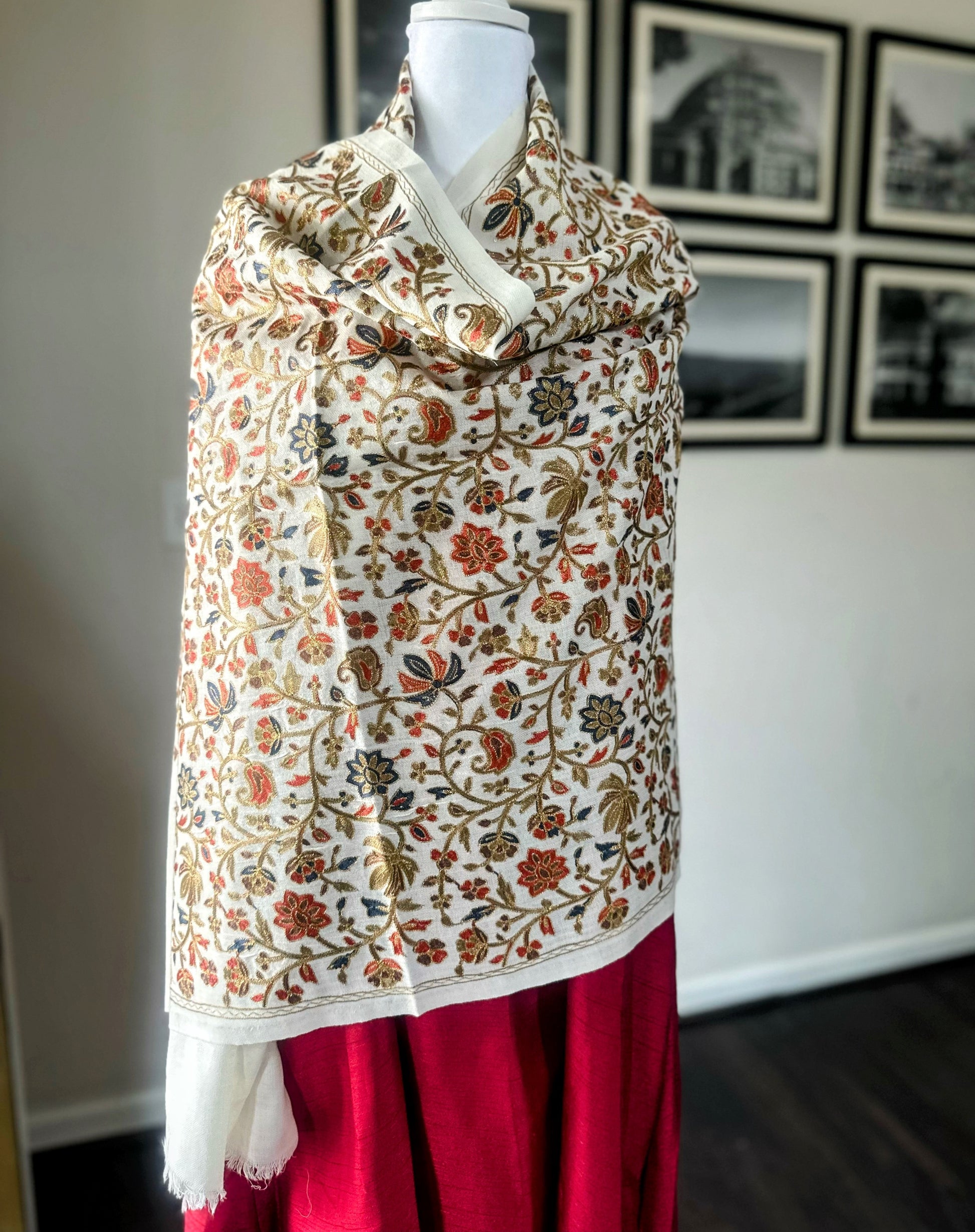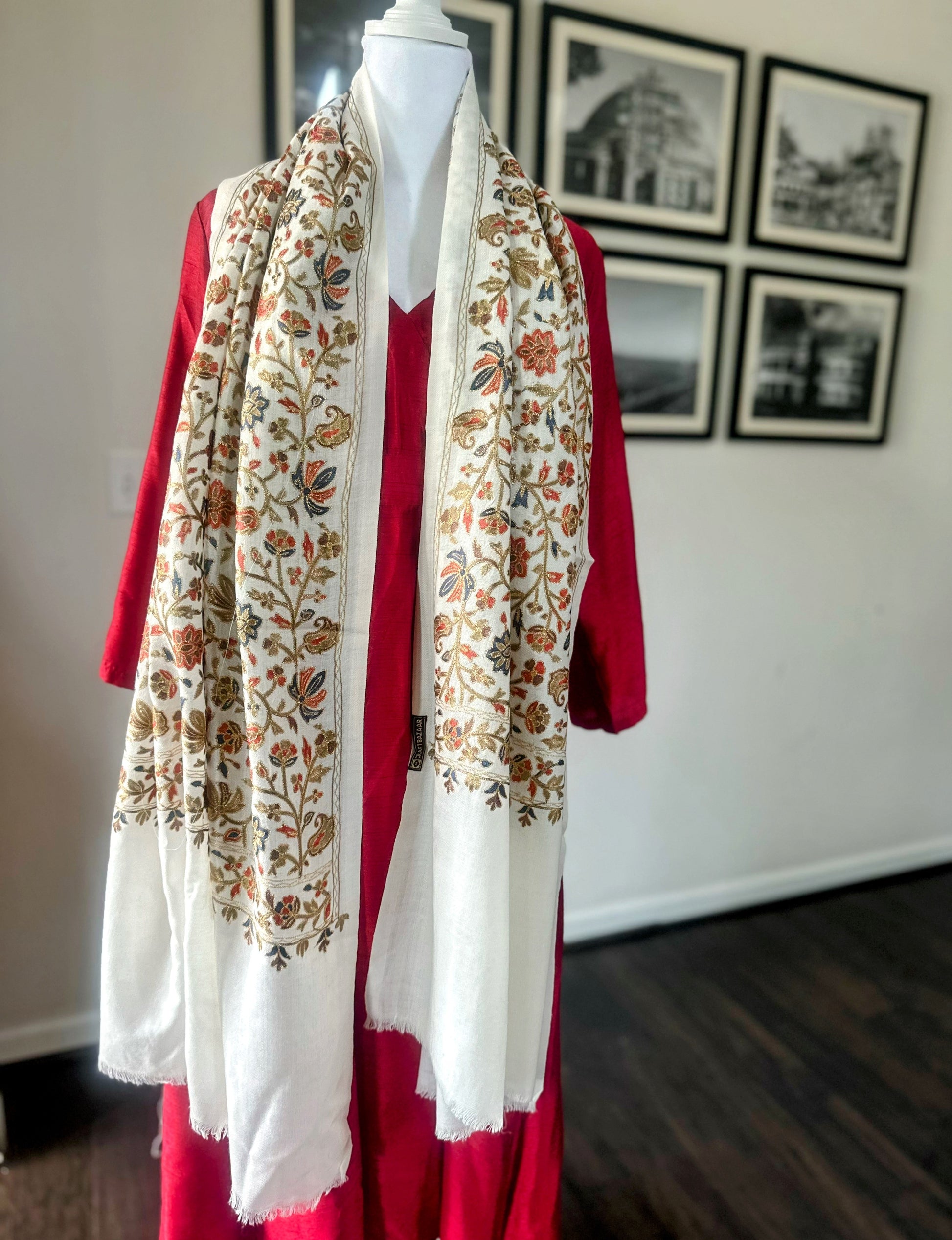 Ari work Pashmina Scarf, Cashmere Scarf, Finest Quality Kashmiri Shawl, Scarves For Women