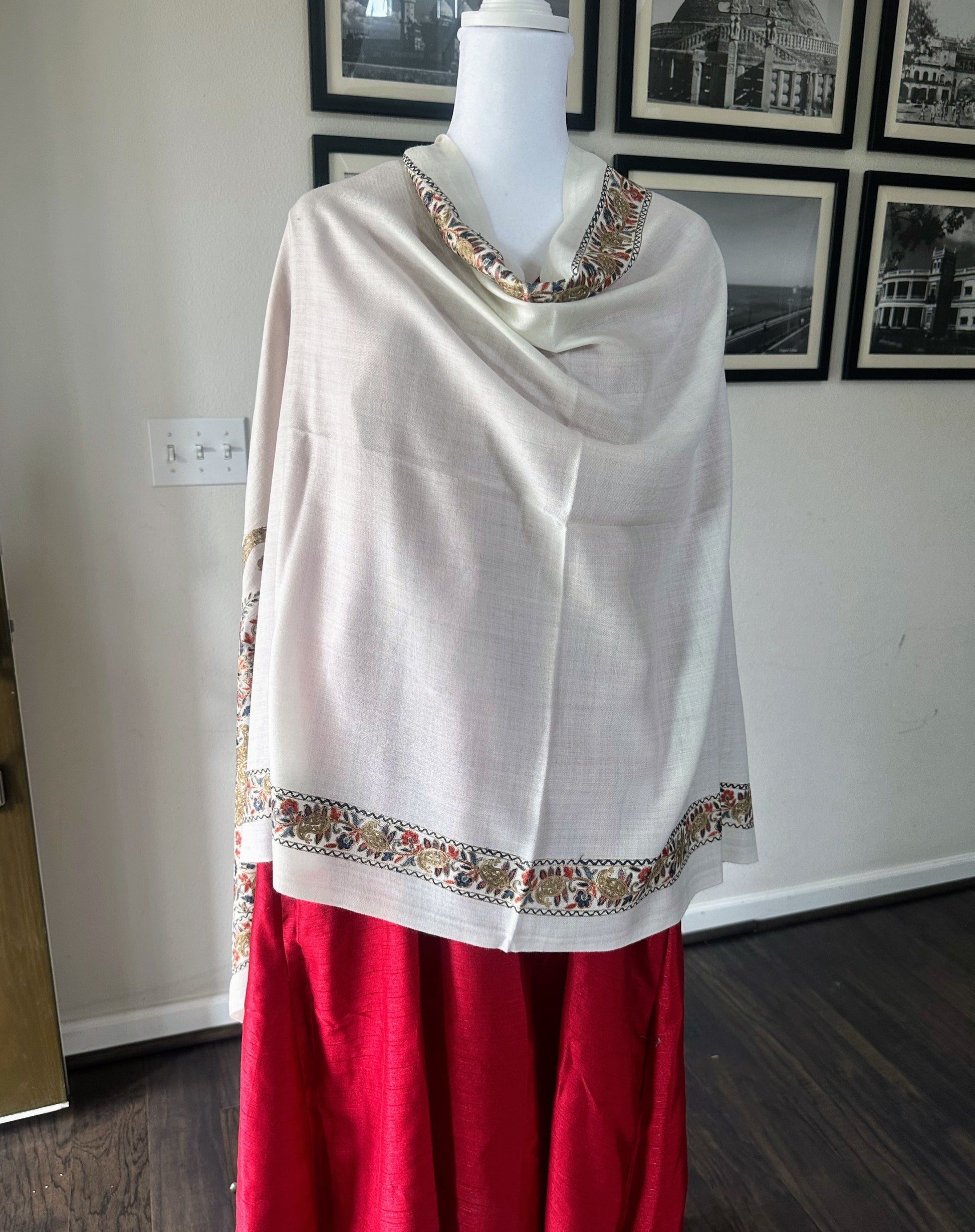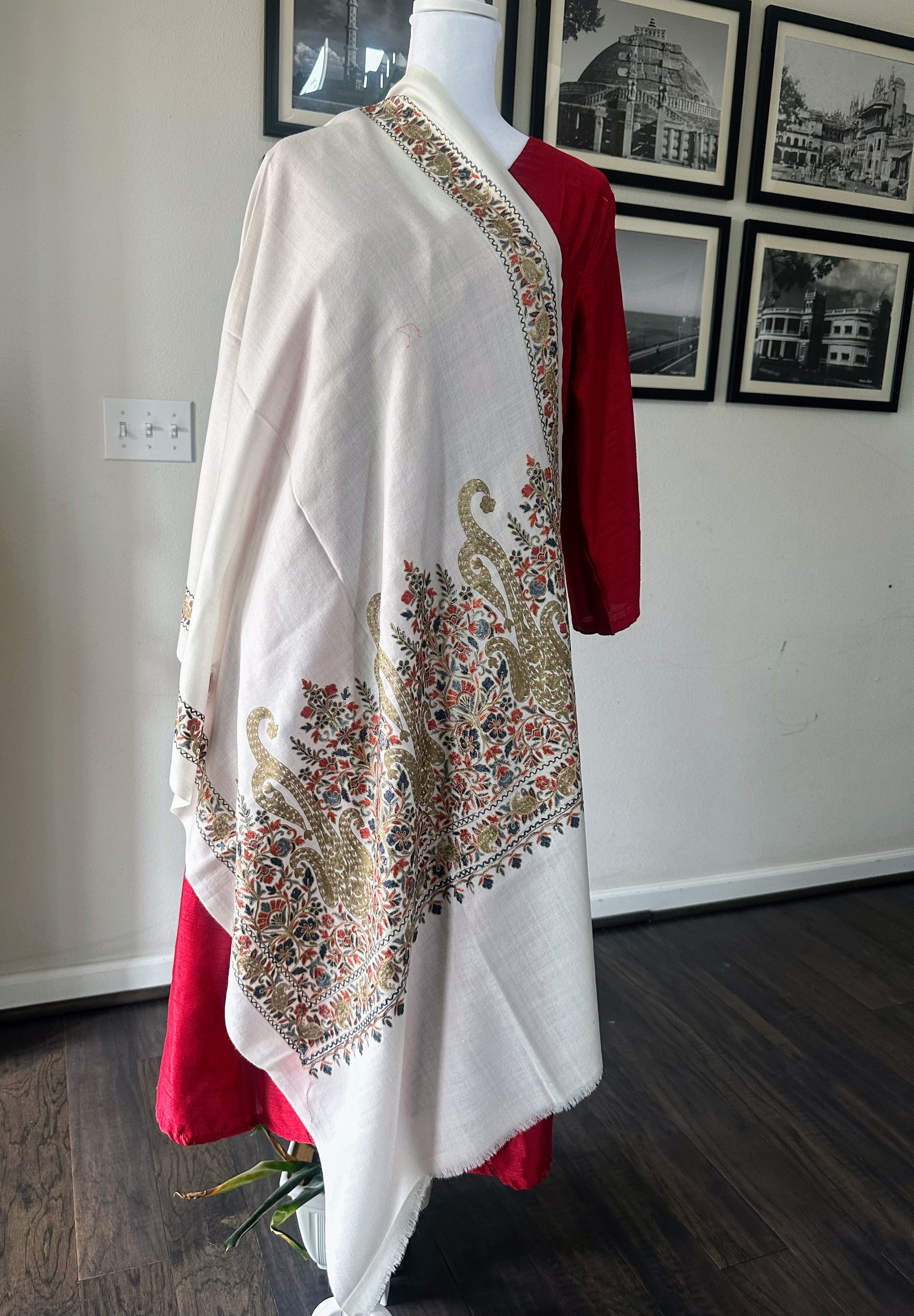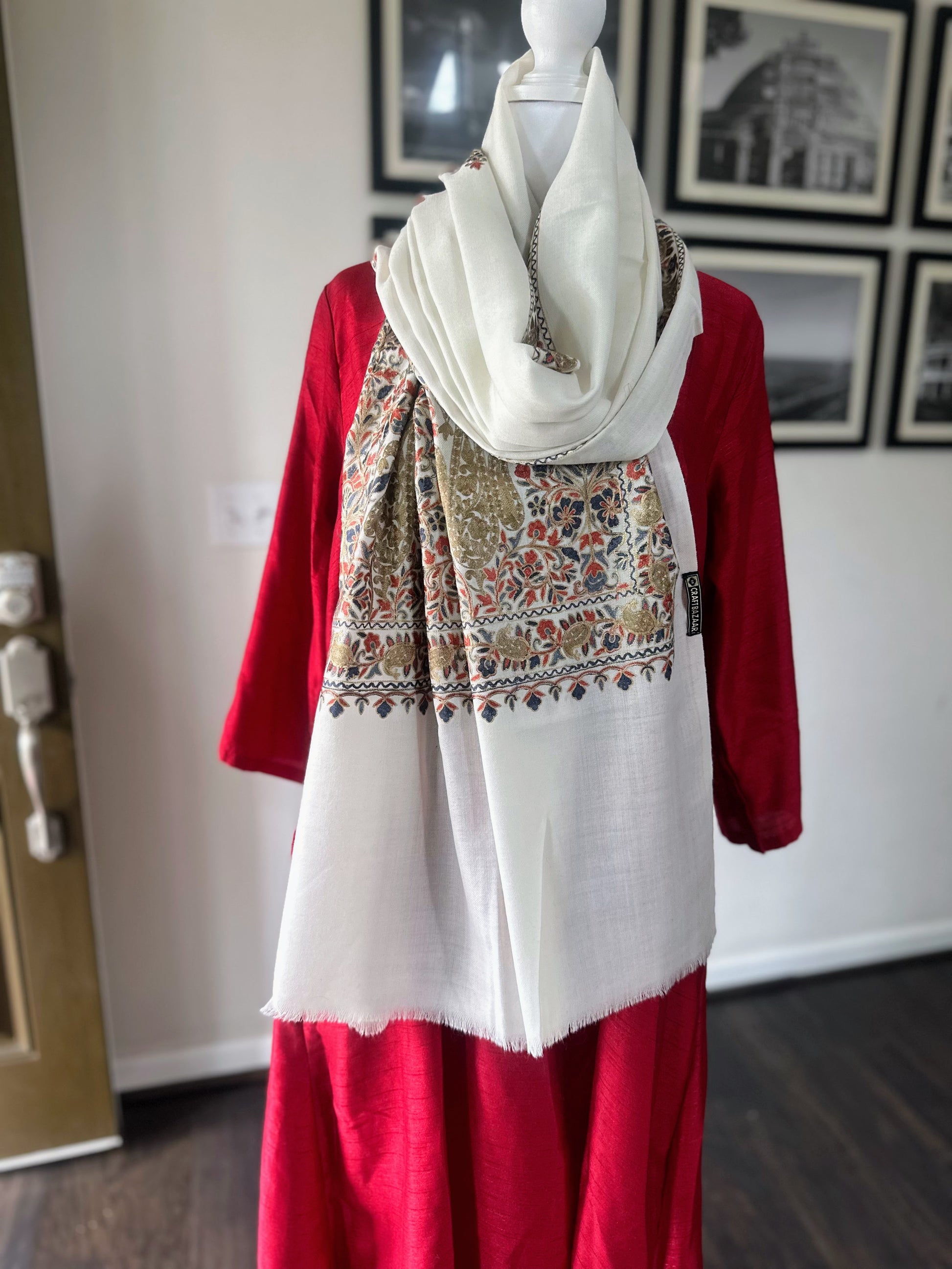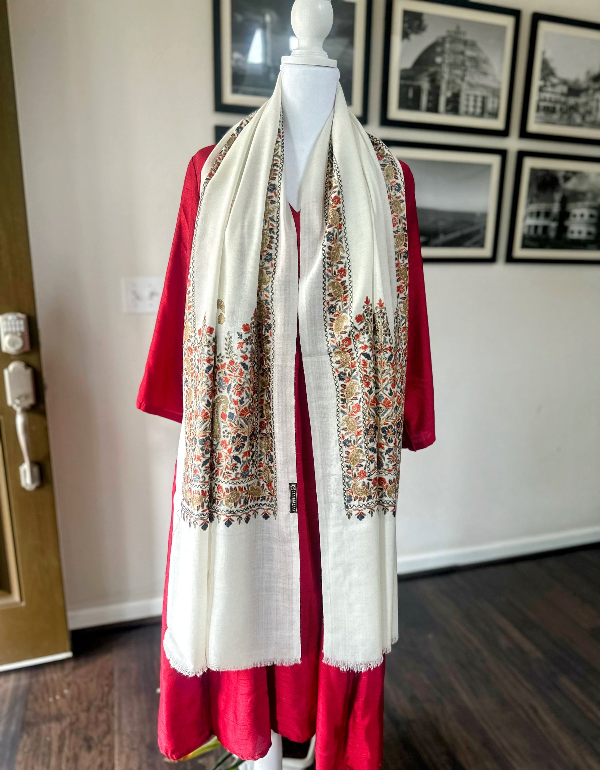Ari work Pashmina Scarf, Cashmere Scarf, Finest Quality Kashmiri Shawl, Scarves For Women