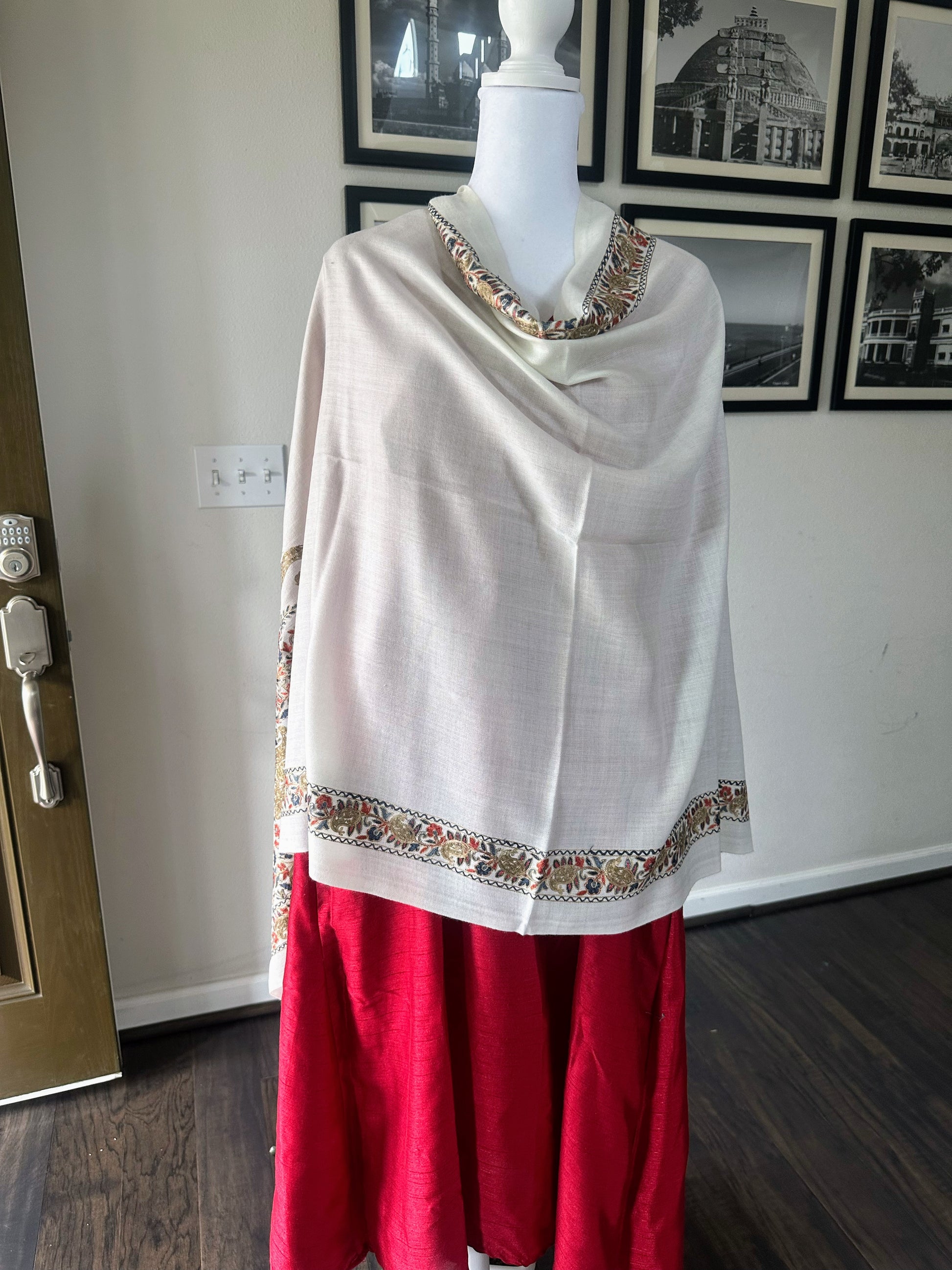 Luxury Pashmina Indian Wedding Scarf, Warm Winter Stole | Off-white Scarf