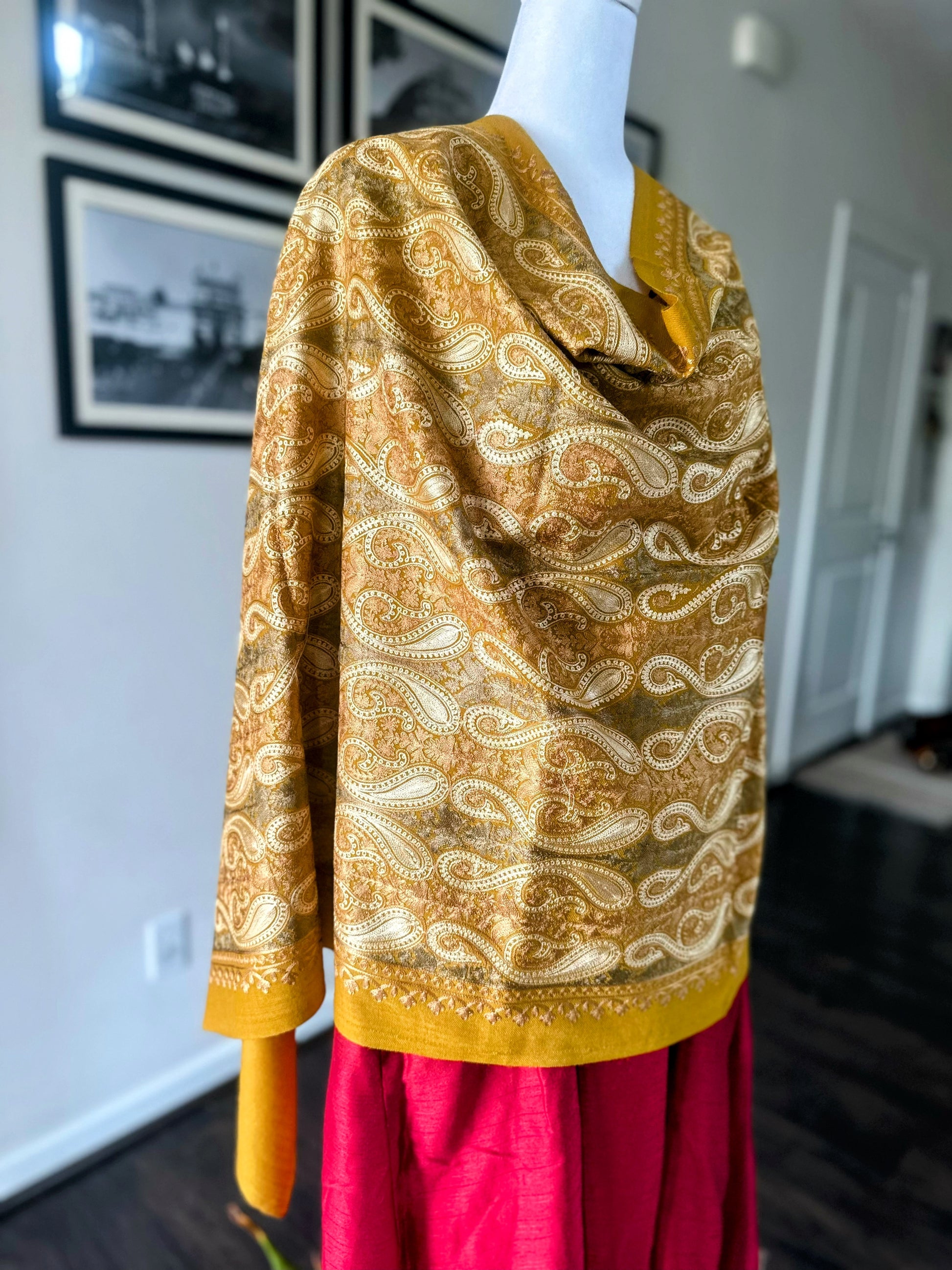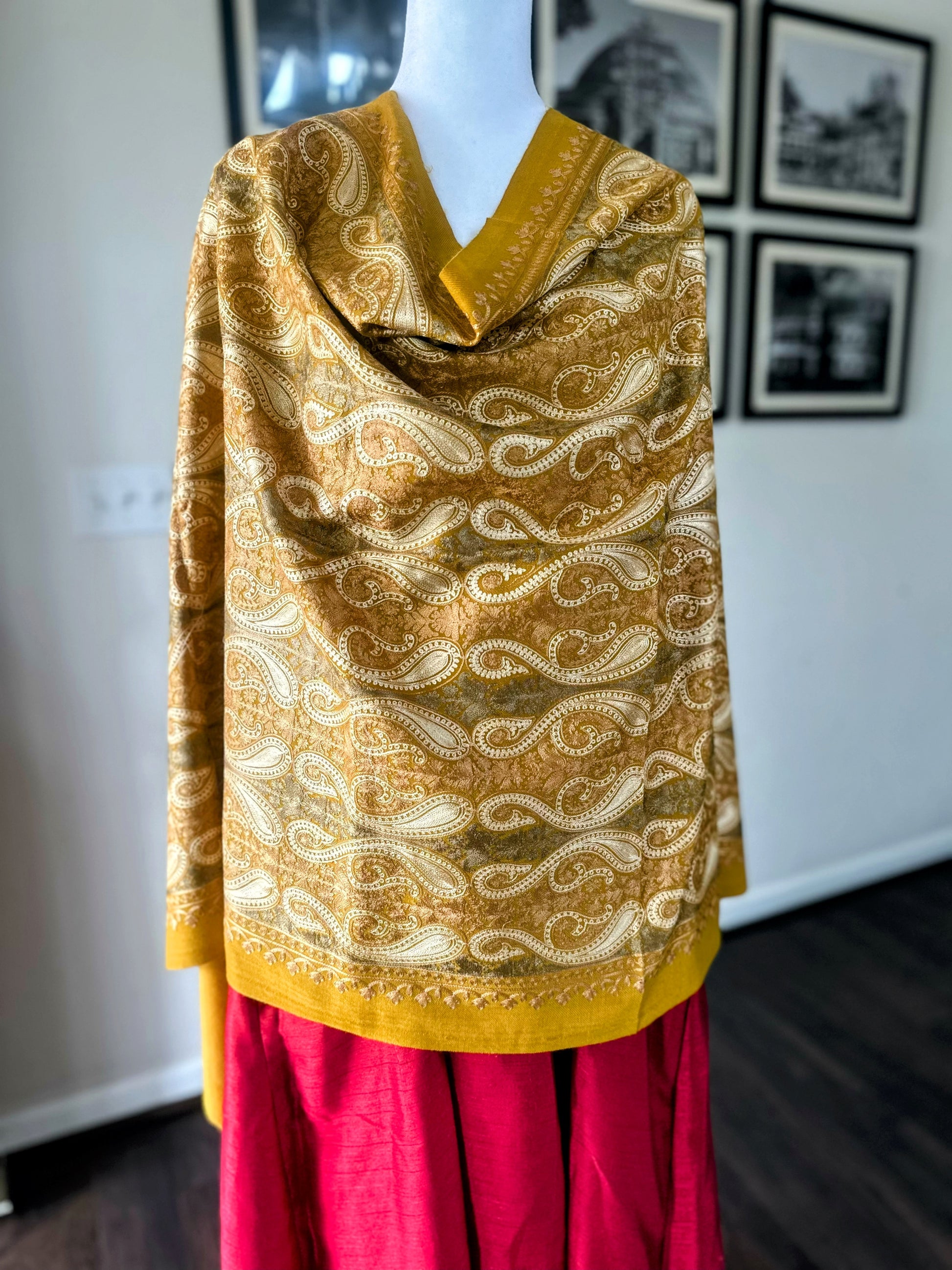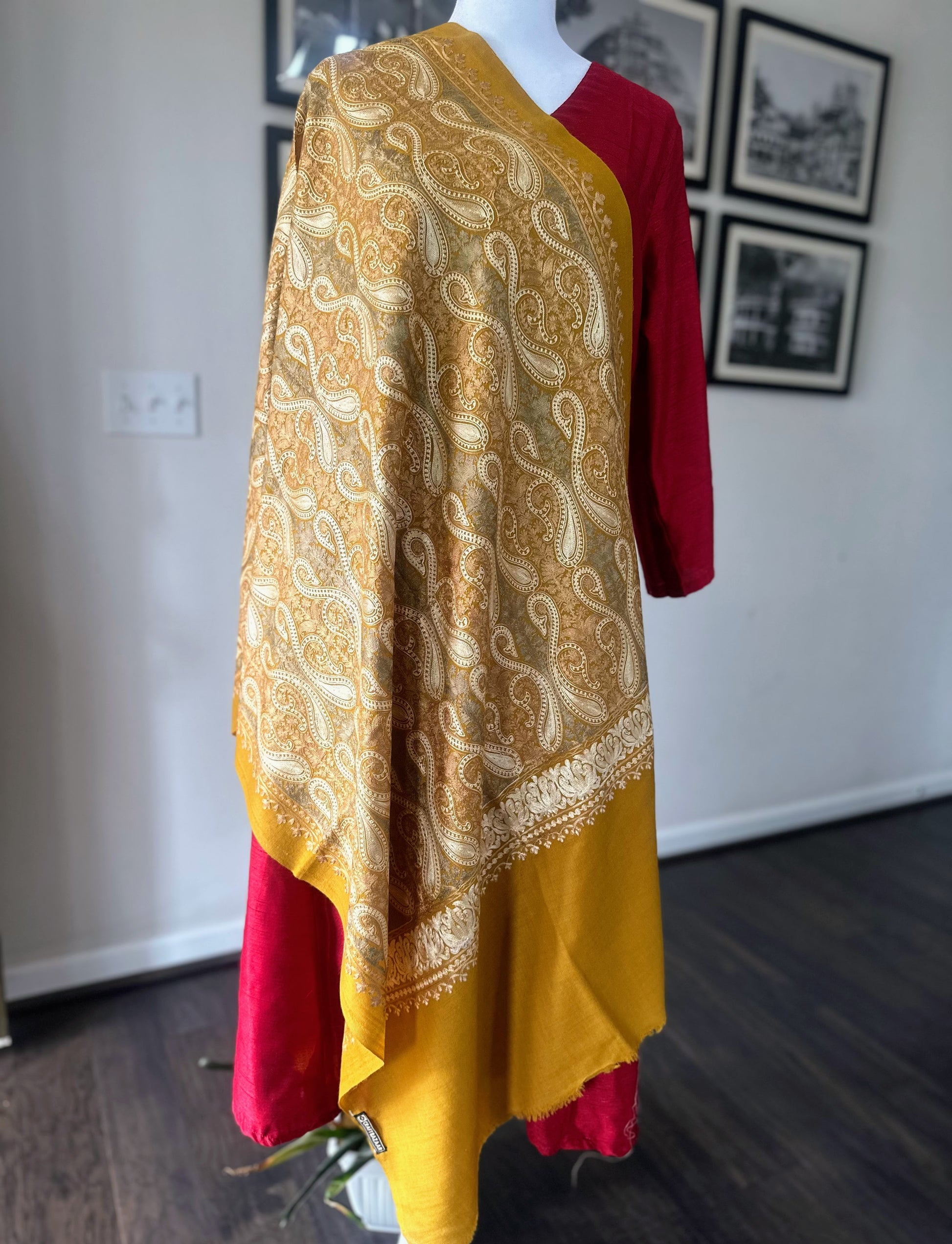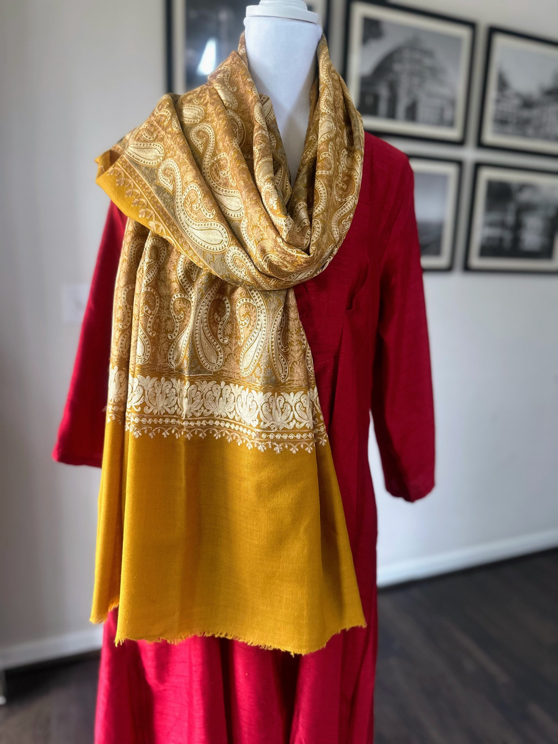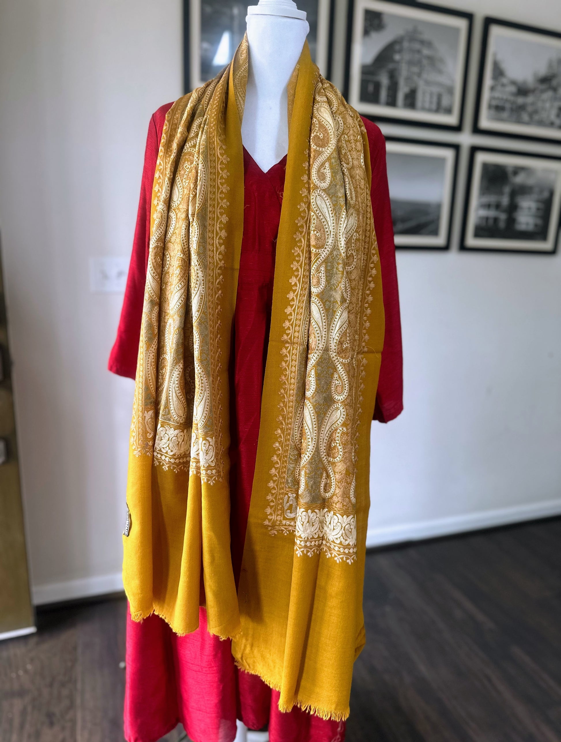 Luxury Pashmina Indian Wedding Scarf, Warm Winter Stole | Yellow Scarf