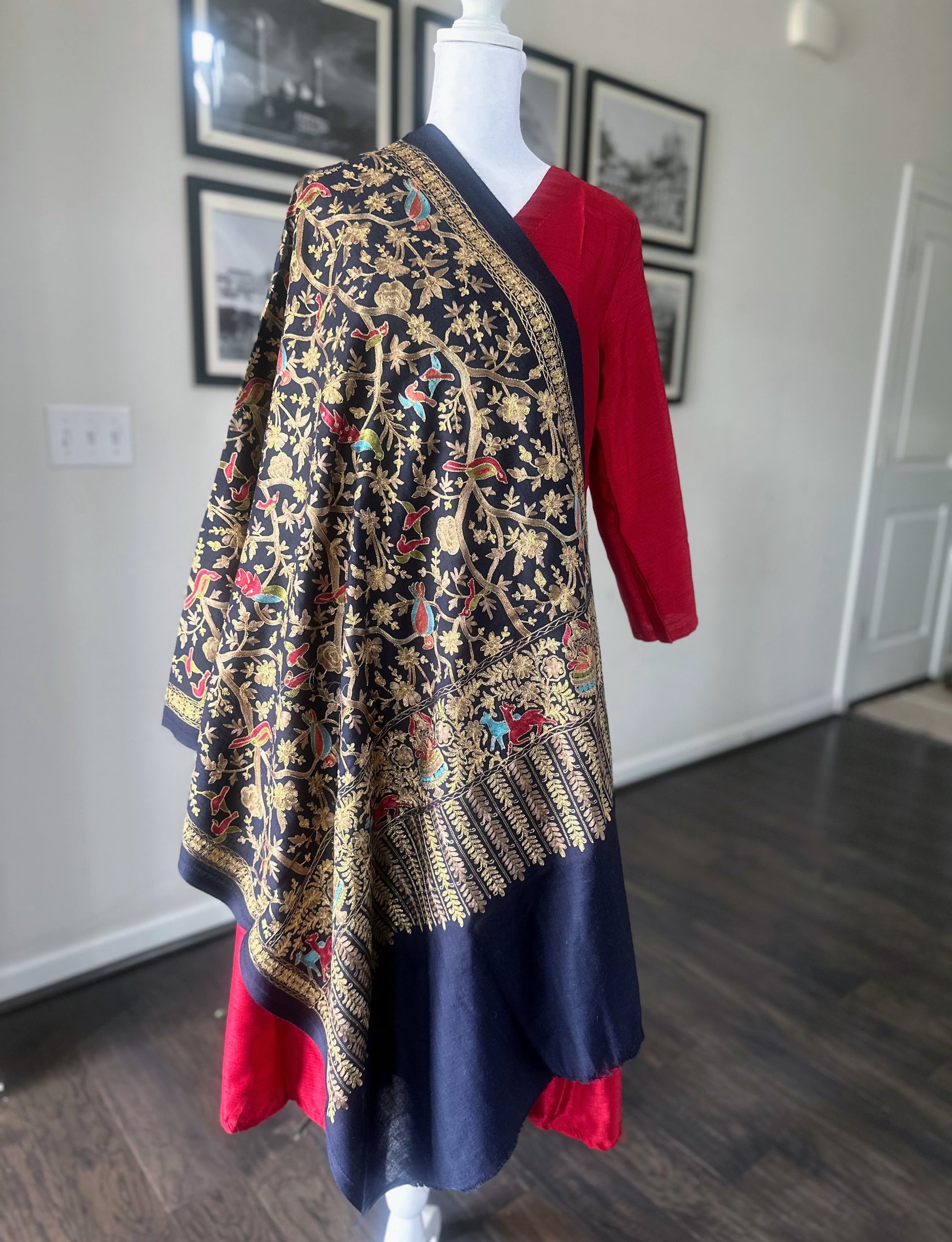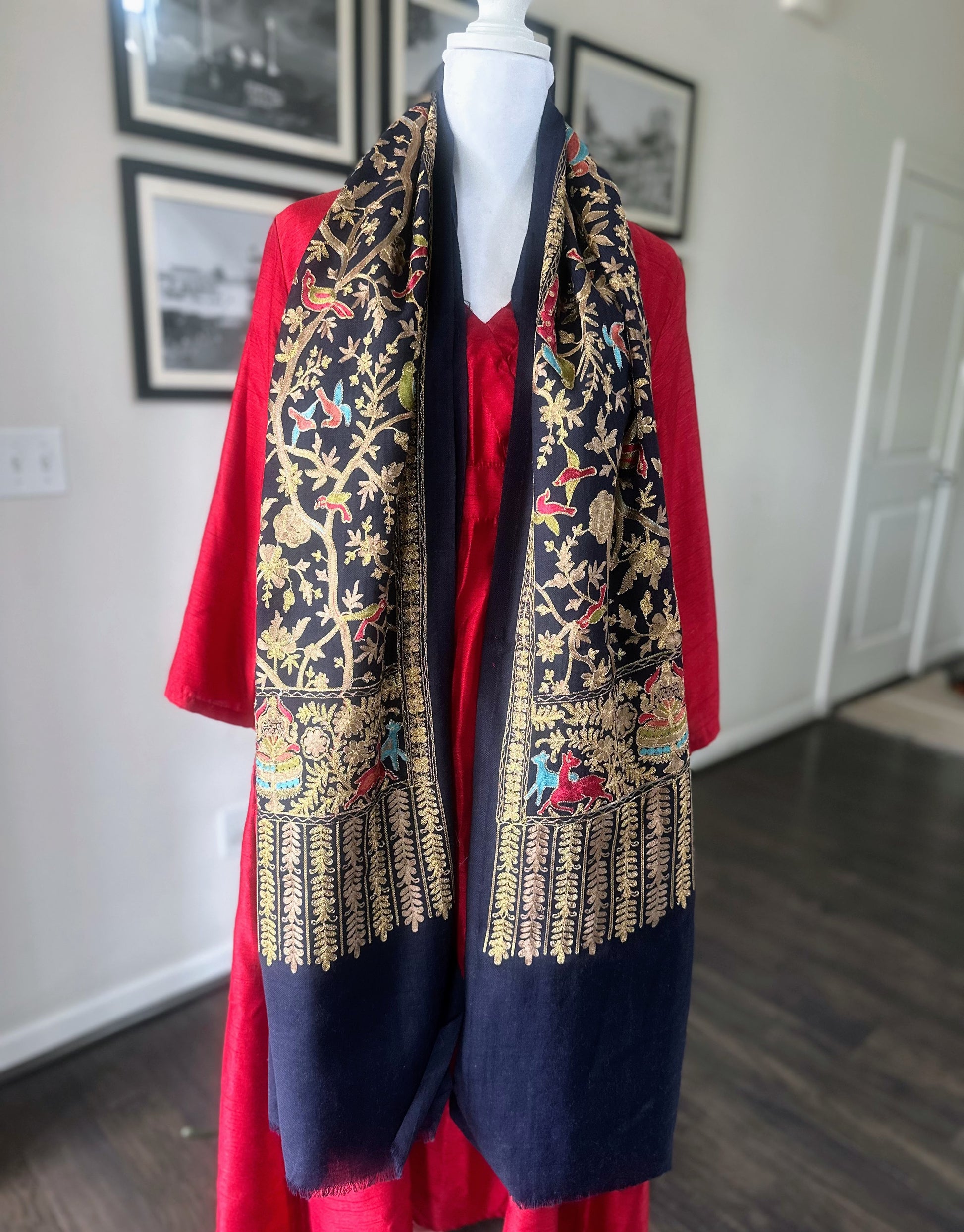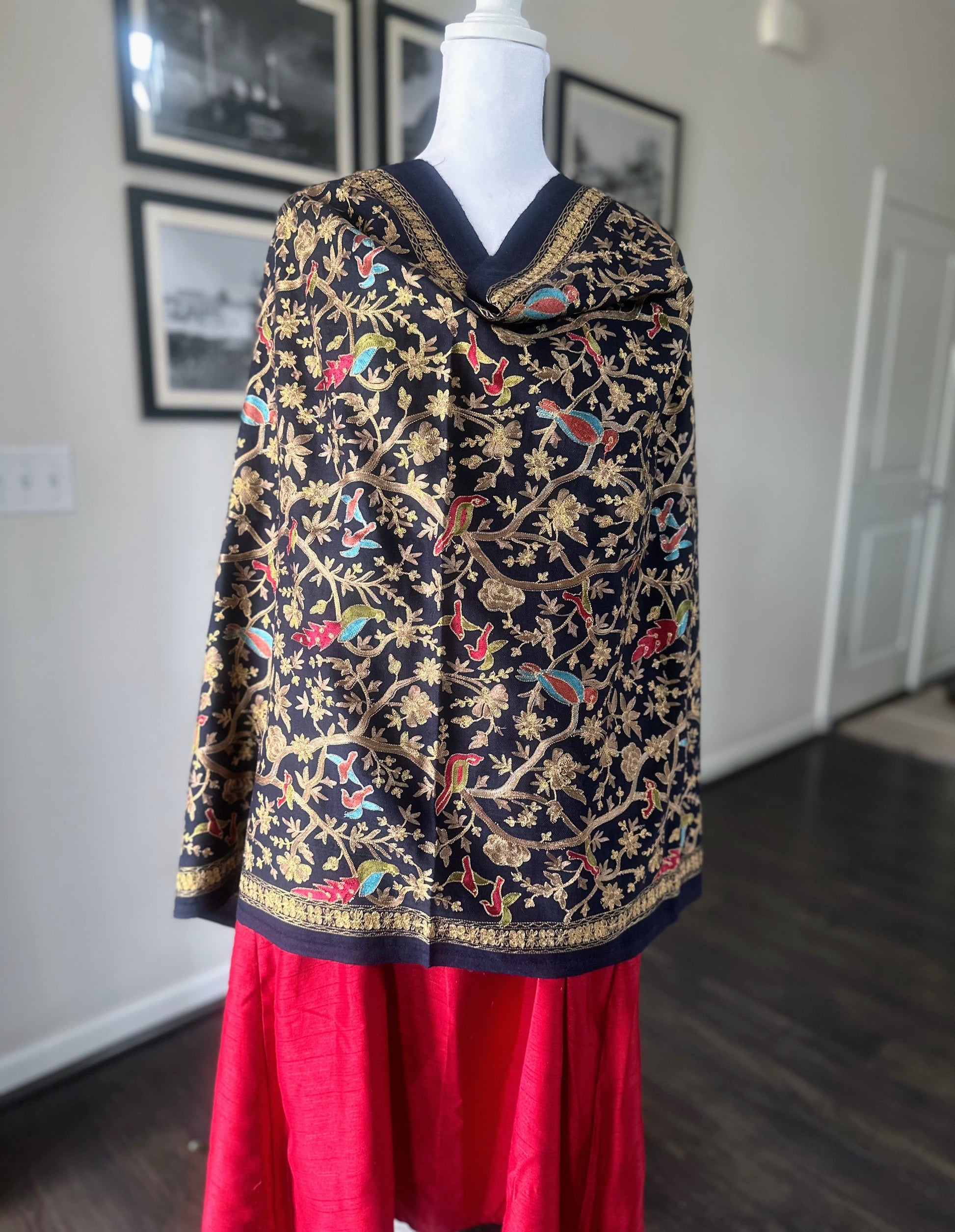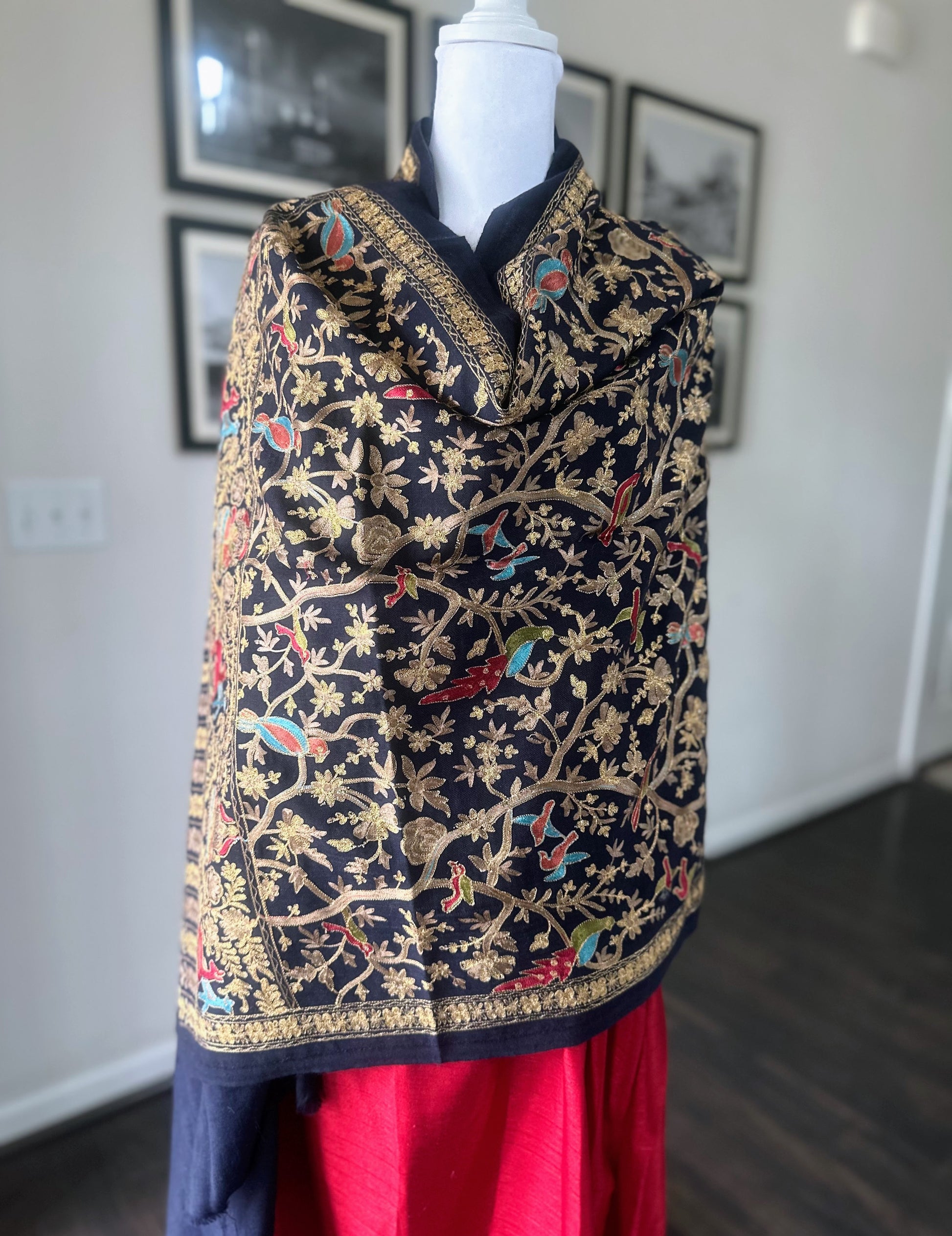 Ari work Pashmina Scarf, Cashmere Scarf, Finest Quality Kashmiri Shawl, Scarves For Women