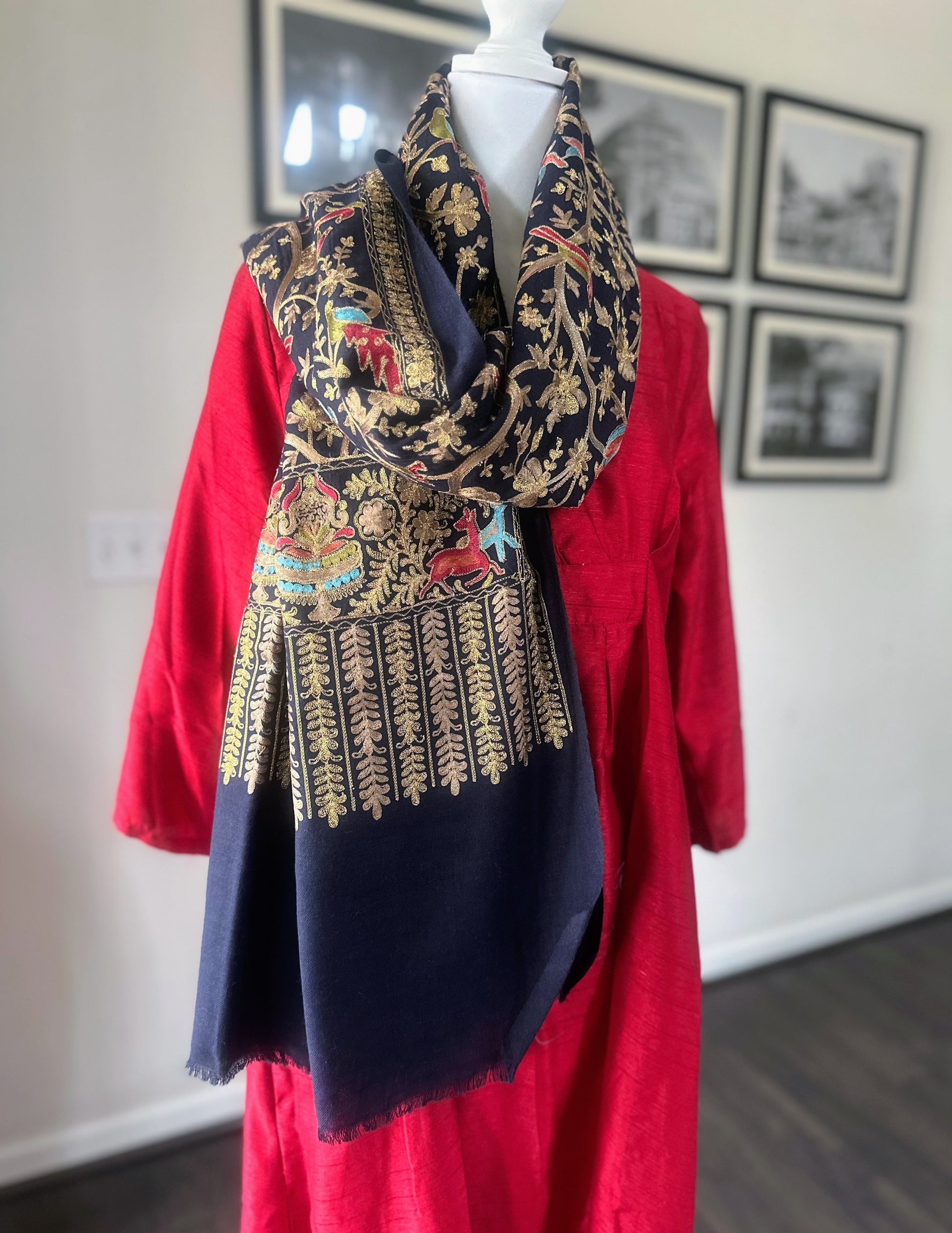 Luxury Pashmina Indian Wedding Scarf, Ethical Gift, Warm Winter Stole | Navy Scarf
