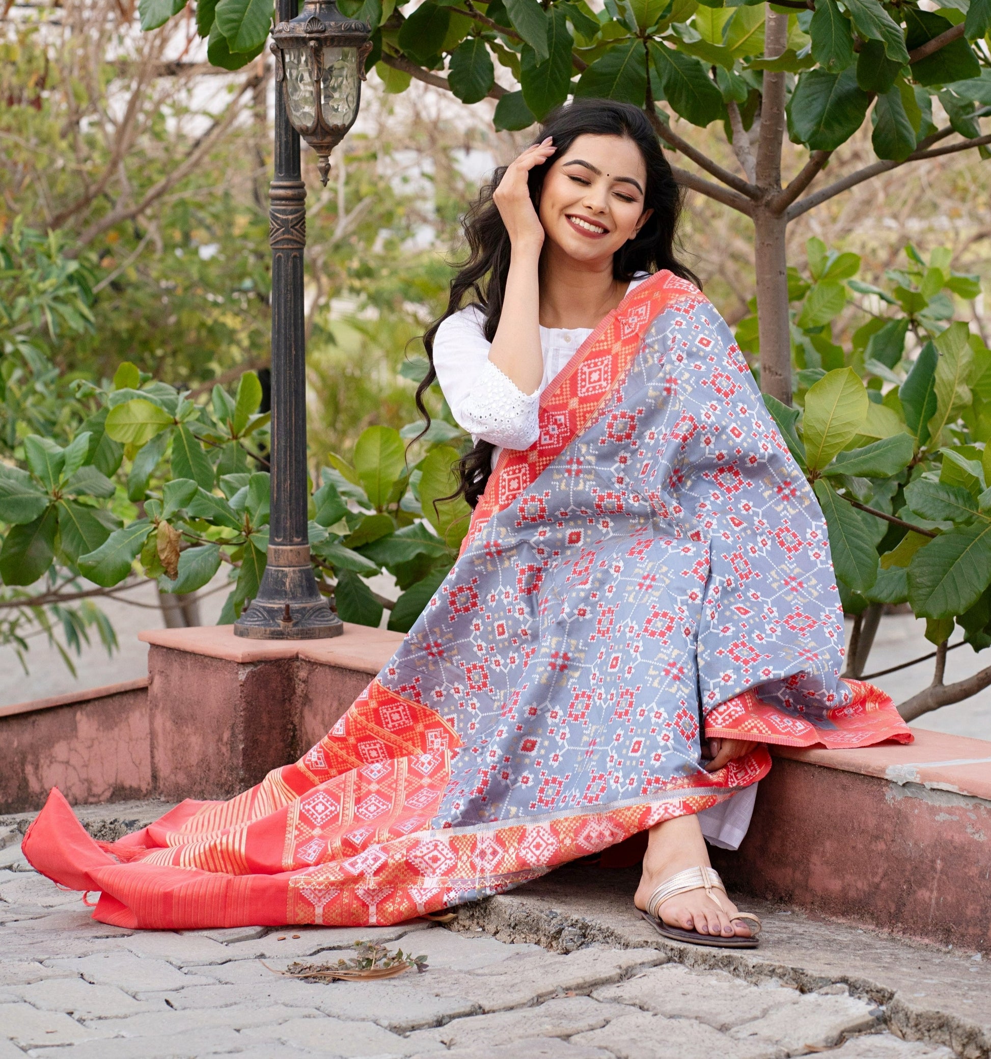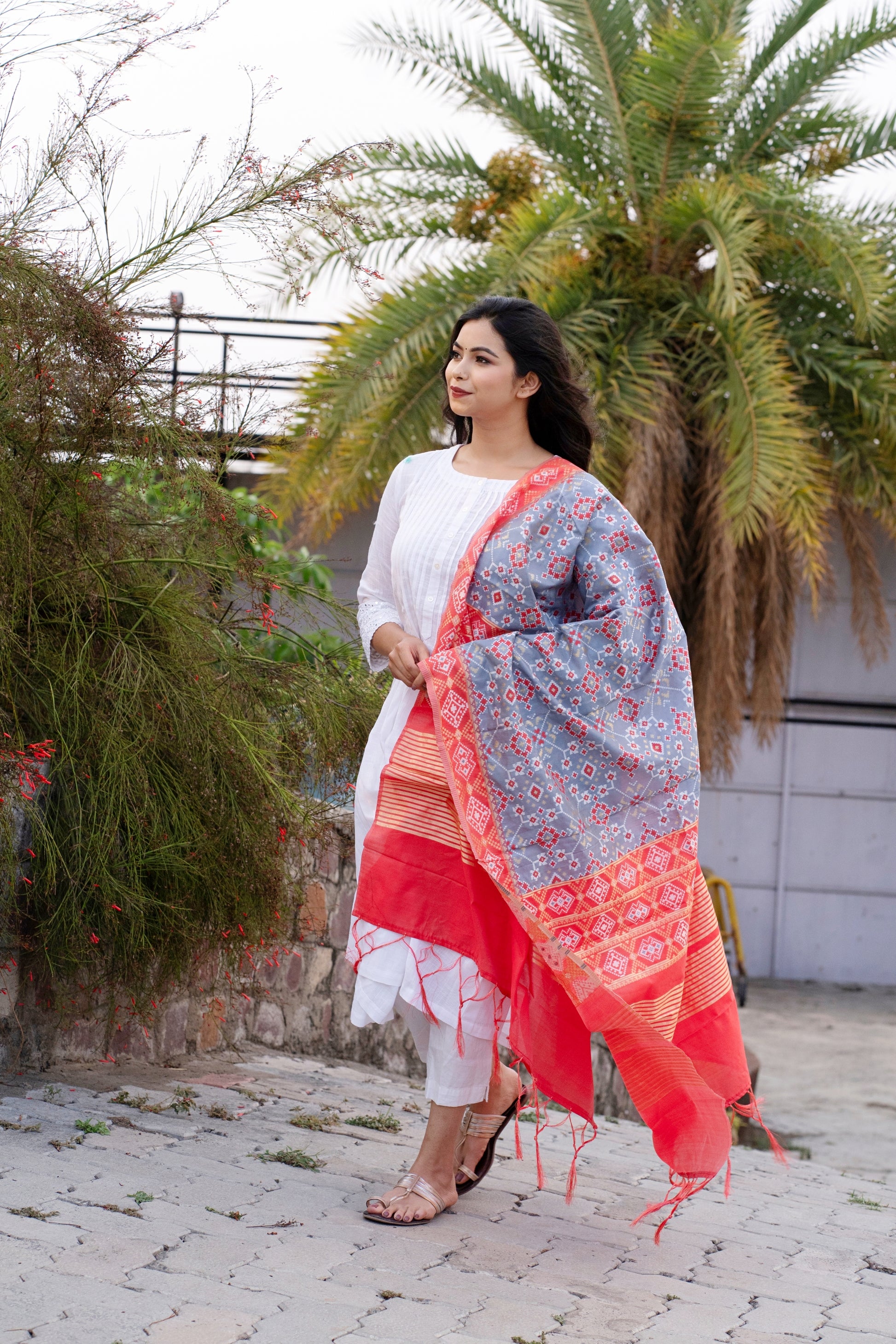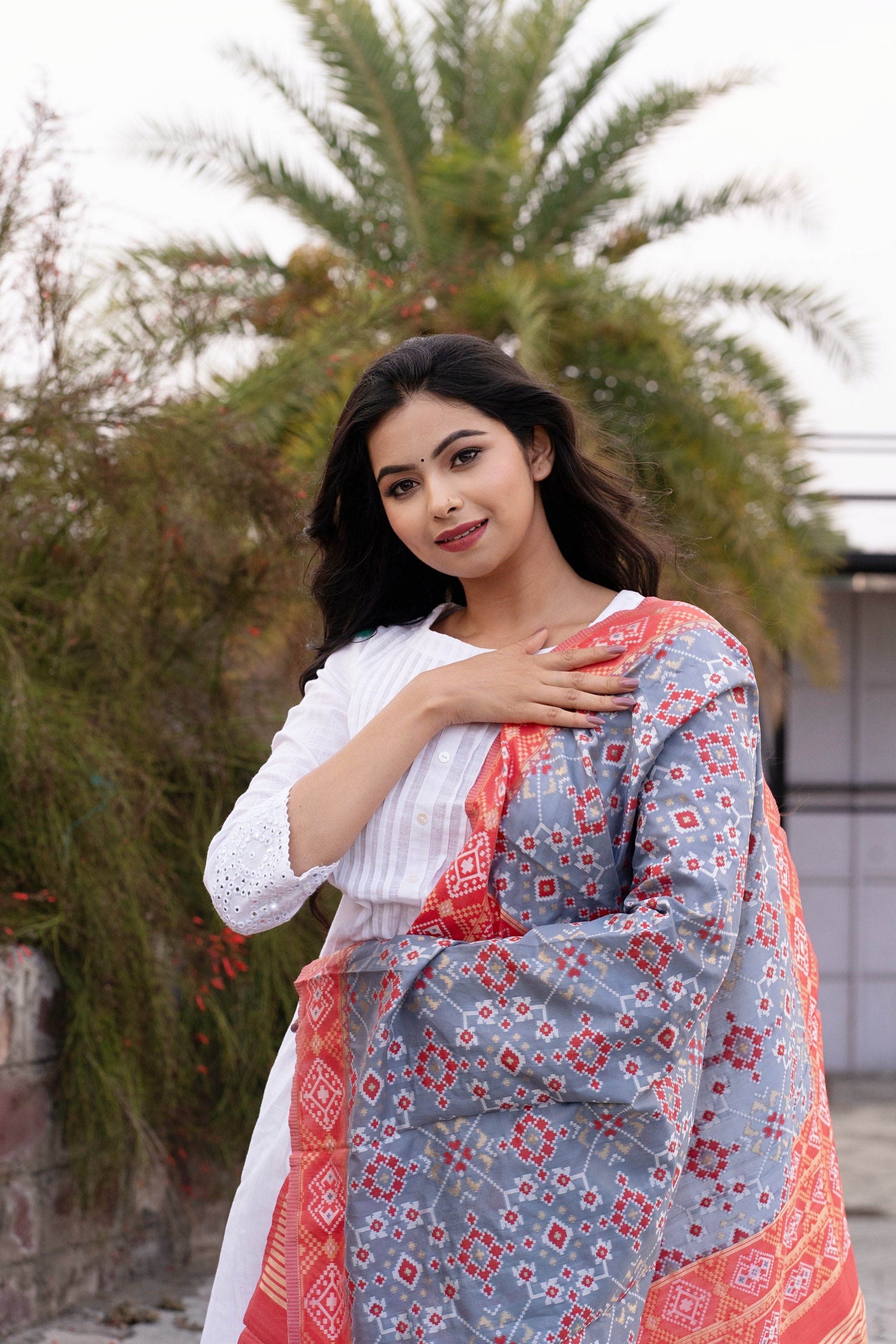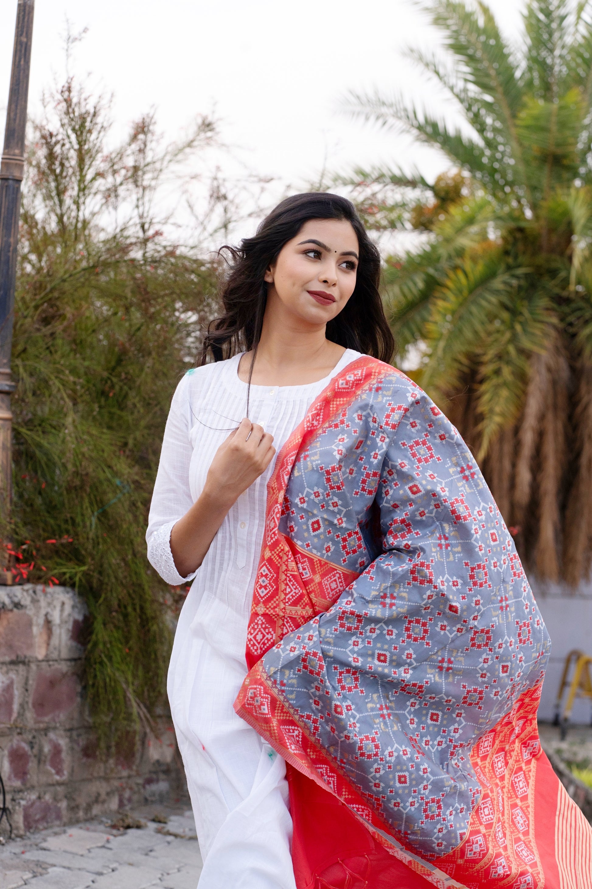 Our soft and luxurious Patola cotton-silk dupatta, is perfect for any occasion. This dupatta is the perfect accessory to add a touch of glamor to your outfit. Elevate your fashion game with this gorgeous and fashionable dupatta that is sure to turn heads.