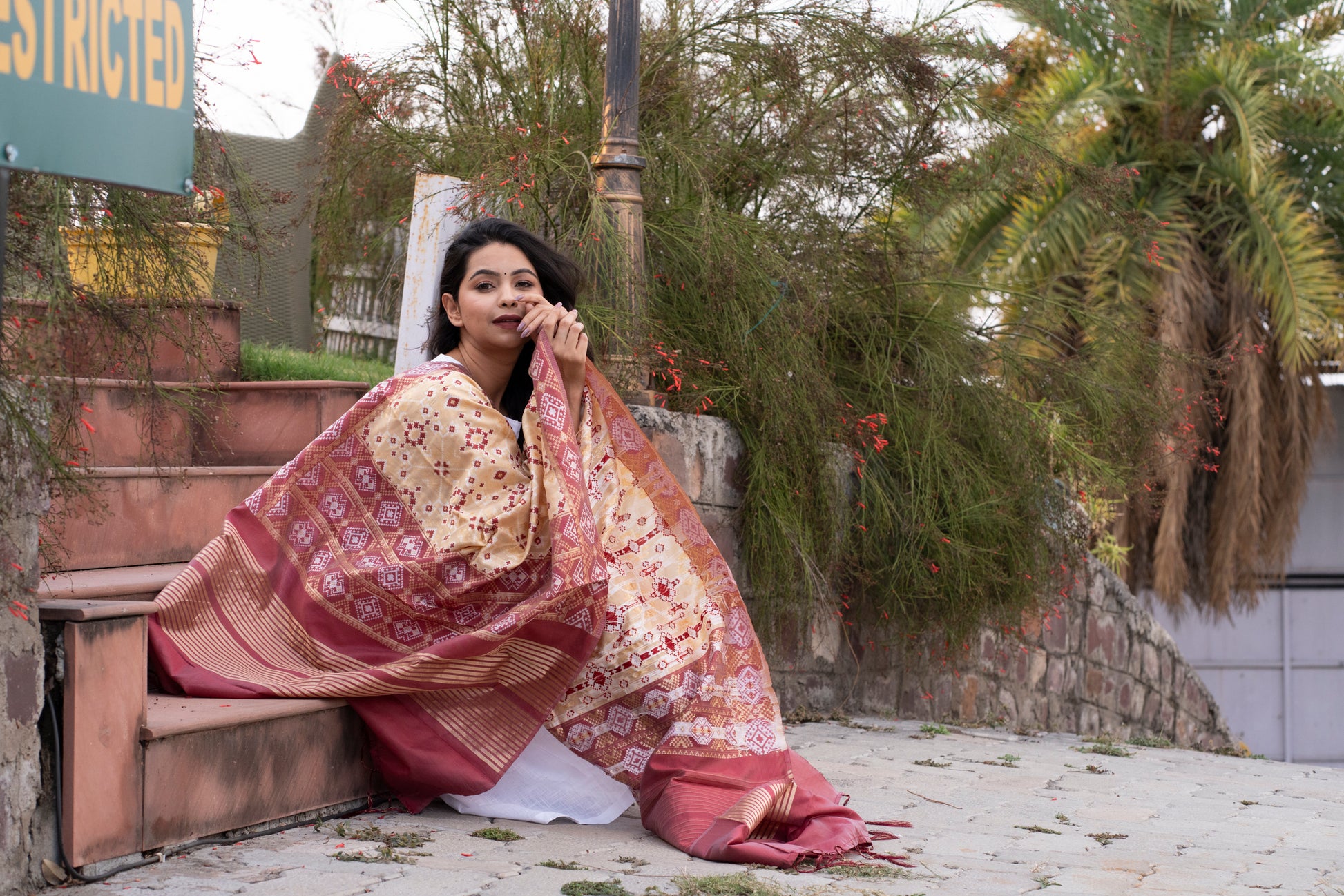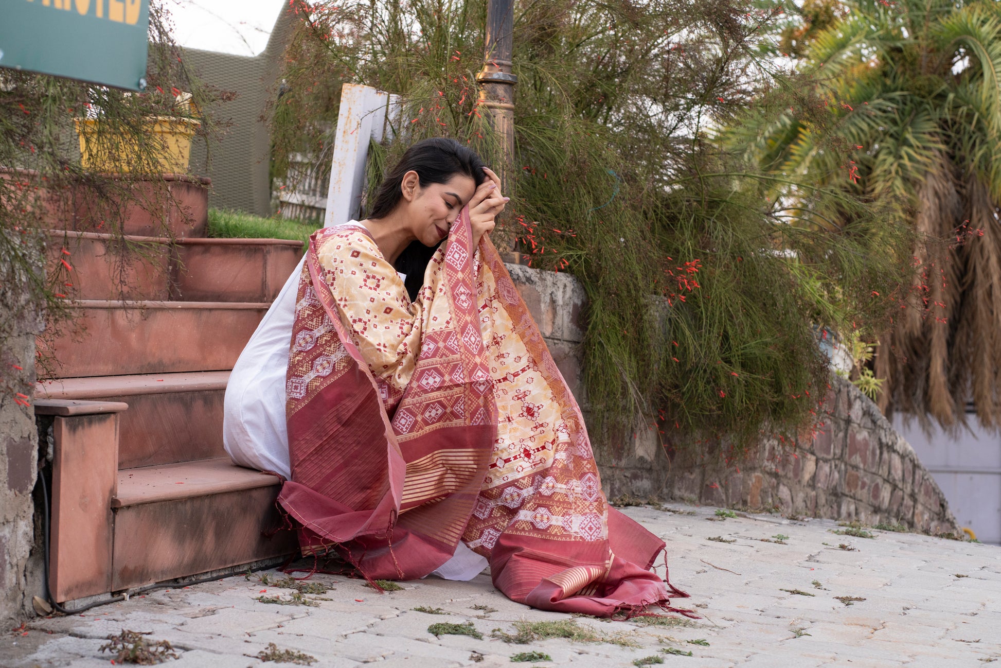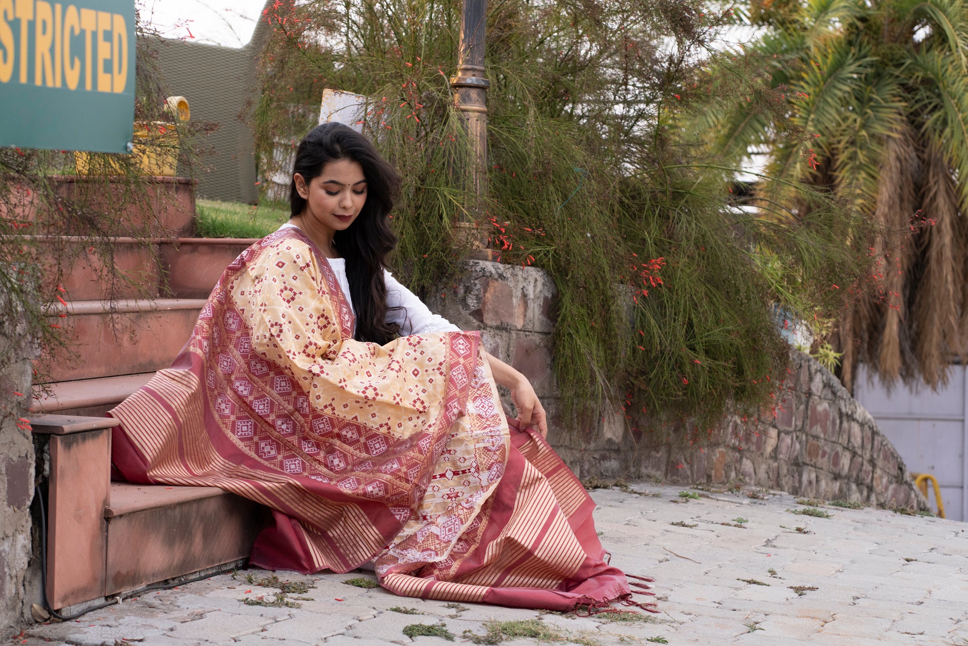 Traditional Silk Patola Dupatta [Gold & Maroon]