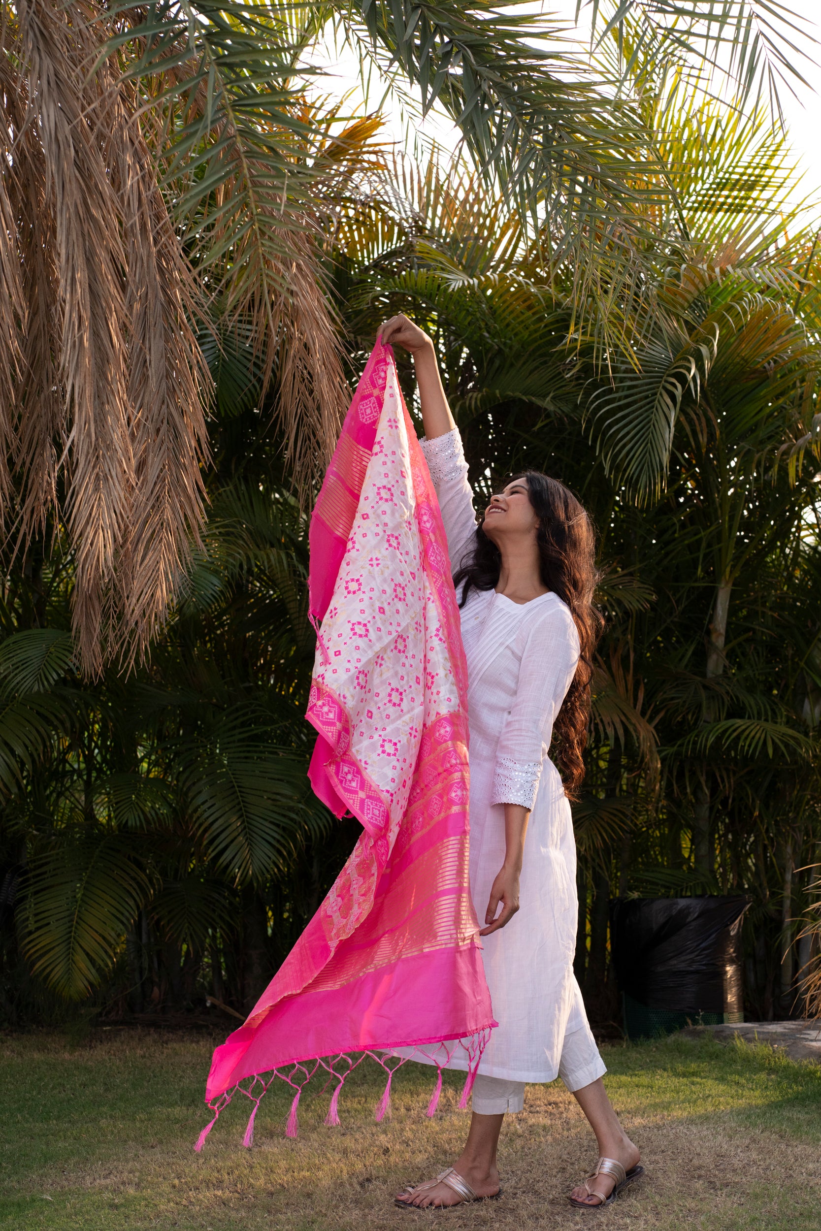 Our soft and luxurious Patola cotton-silk dupatta, is perfect for any occasion. This dupatta is the perfect accessory to add a touch of glamor to your outfit. Elevate your fashion game with this gorgeous and fashionable dupatta that is sure to turn heads.
